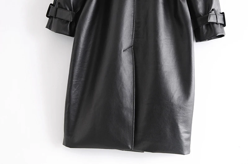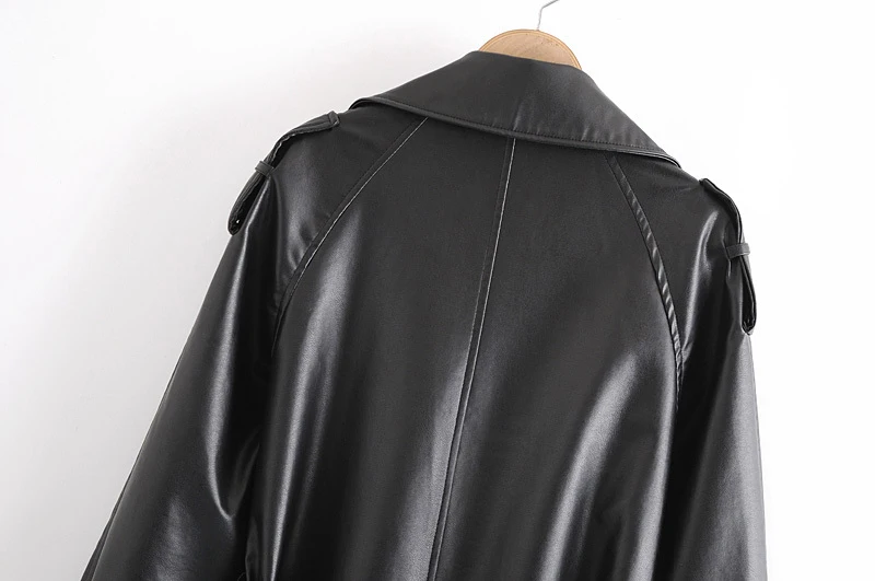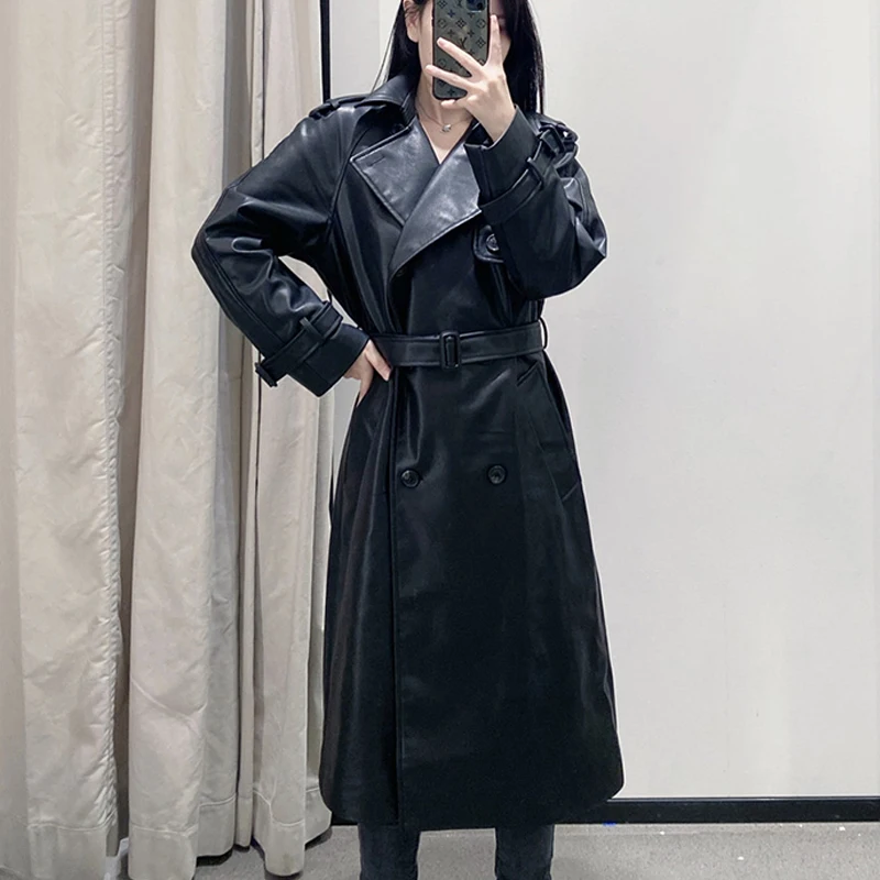 Модная длинная байкерская куртка из искусственной кожи для женщин на осень и зиму 2020, однотонный плащ с поясом, Повседневная Свободная ветровка для женщин