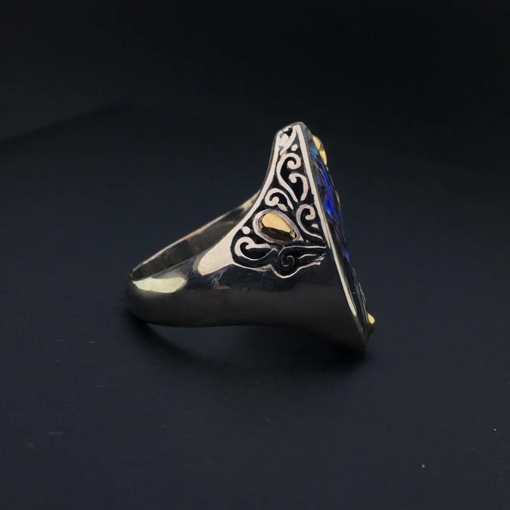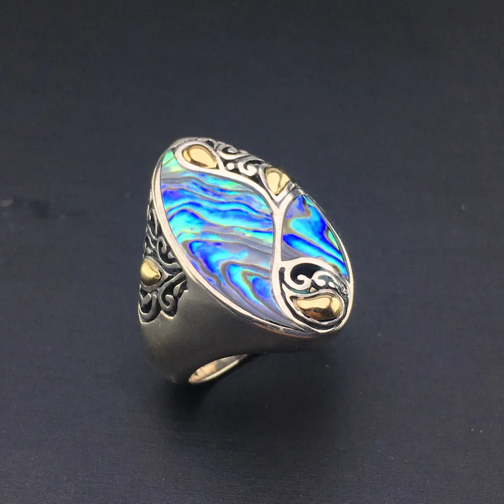 Товар: кольца с драгоценным камнем Материал: Стерлинговое Серебро Центральный камень: раковина абалона Драгоценный камень Siz:15*25 мм G14k Вес: approx.11g Место происхождения: Китай Цепь: Прикрепленная (pandent)