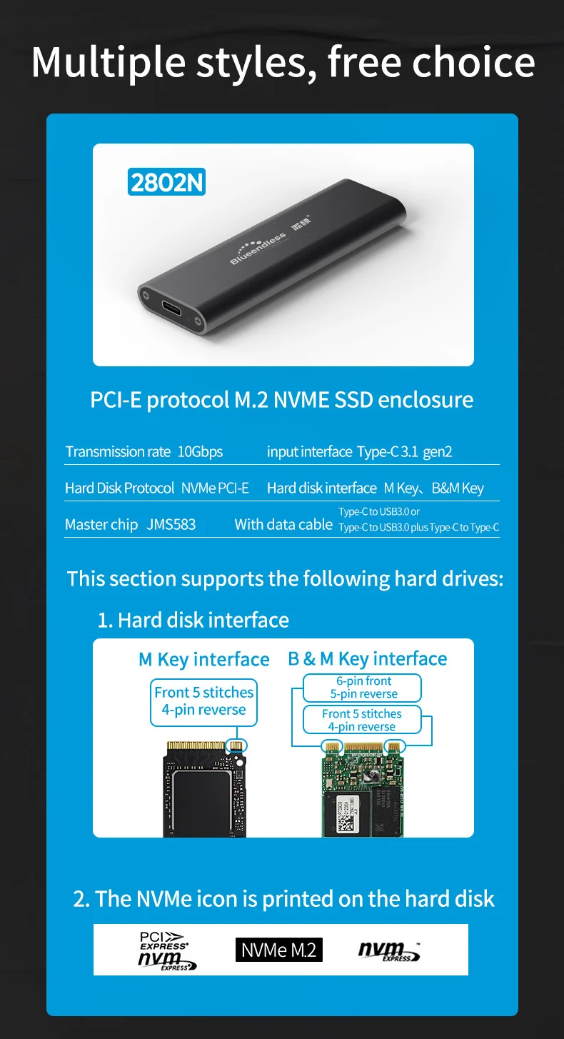 M2802N: Поддержка NVME PCIE,JMS583 Master Chip.