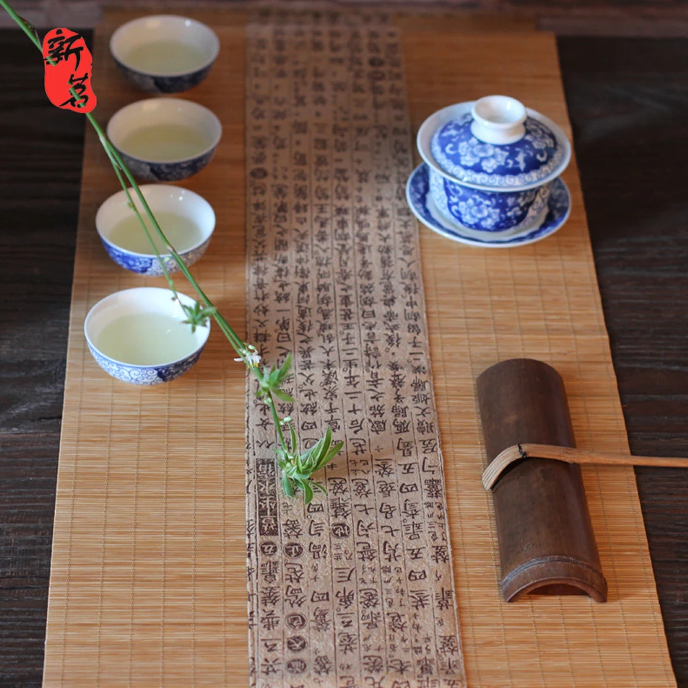 Японский чайный столик, бамбуковый коврик Gongfu, чайная посуда, коврик для горки, кухонный стол, бегуны, твердые столовые приборы, чайный домик, занавеска, роскошь