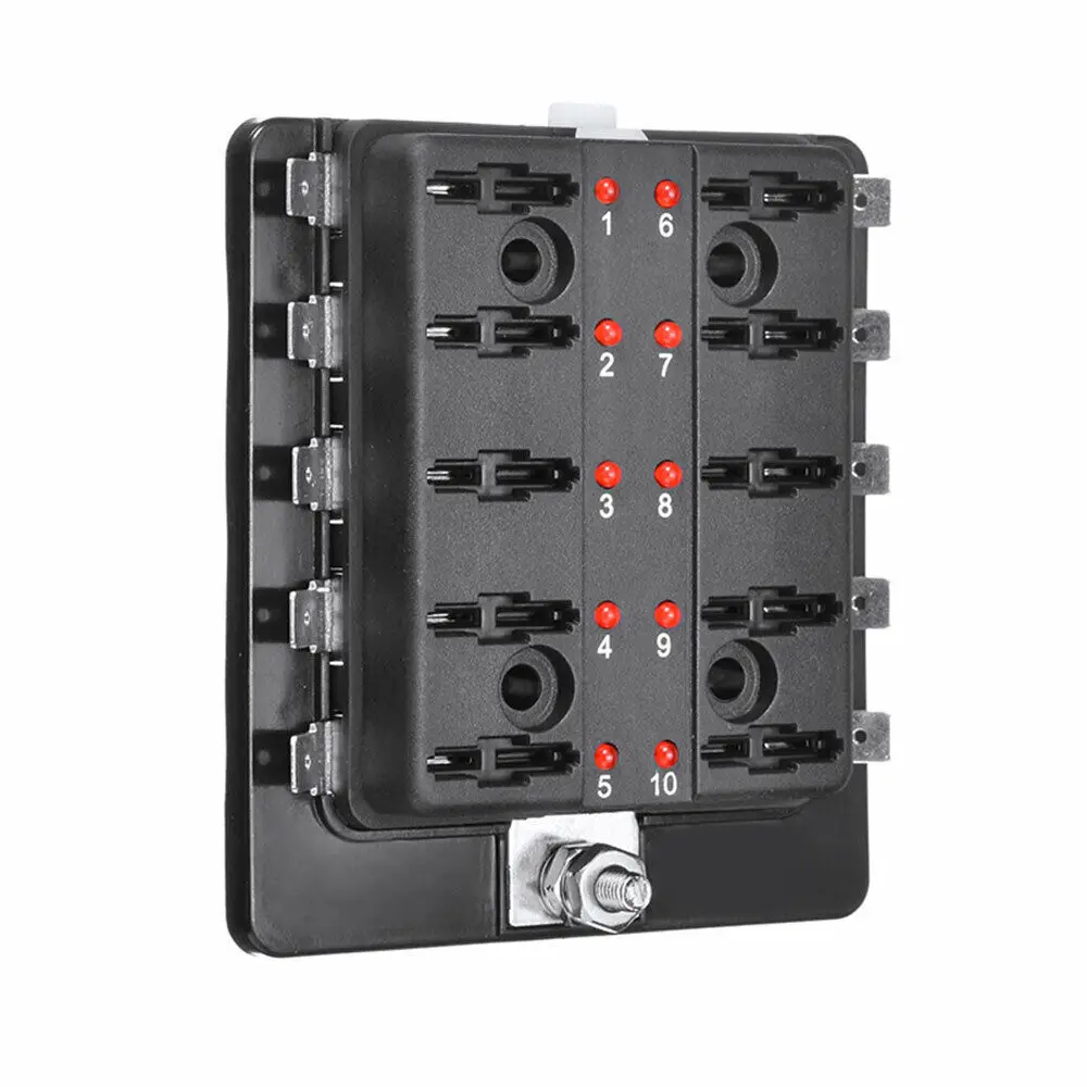12В/24В 10-полосная стандартная коробка предохранителей с светодиодный сигнальный предохранитель