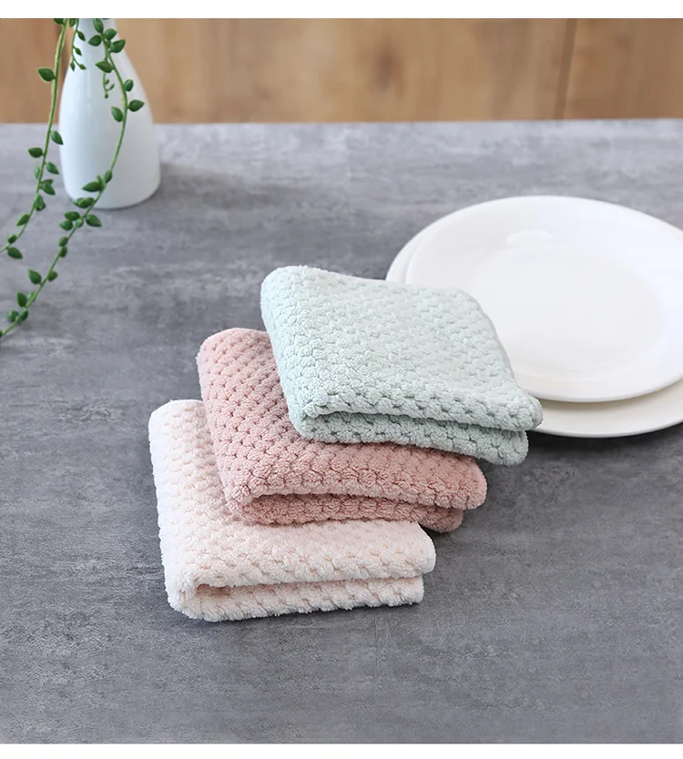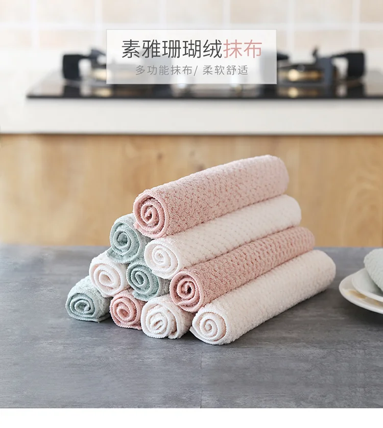 Тряпичное антипригарное масло, впитывающее масло, домашняя кухня, Коралловый кашемир, Влажная и сухая плотная салфетка, щетка для очистки посуды, моющее полотенце