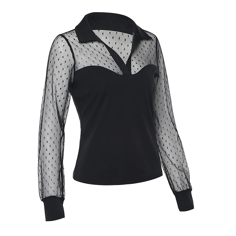 Женская сетчатая прозрачная блузка, прозрачная блузка с длинным рукавом, модная кружевная прозрачная белая рубашка, женские блузы