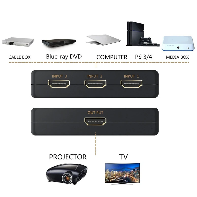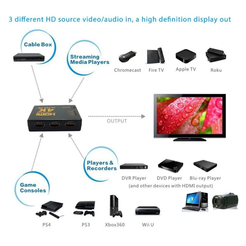 Ultra HD 4K x 2K HDMI Switch 3x1 3 Port Switcher Selector 3D 1080p w/ IR Remote
