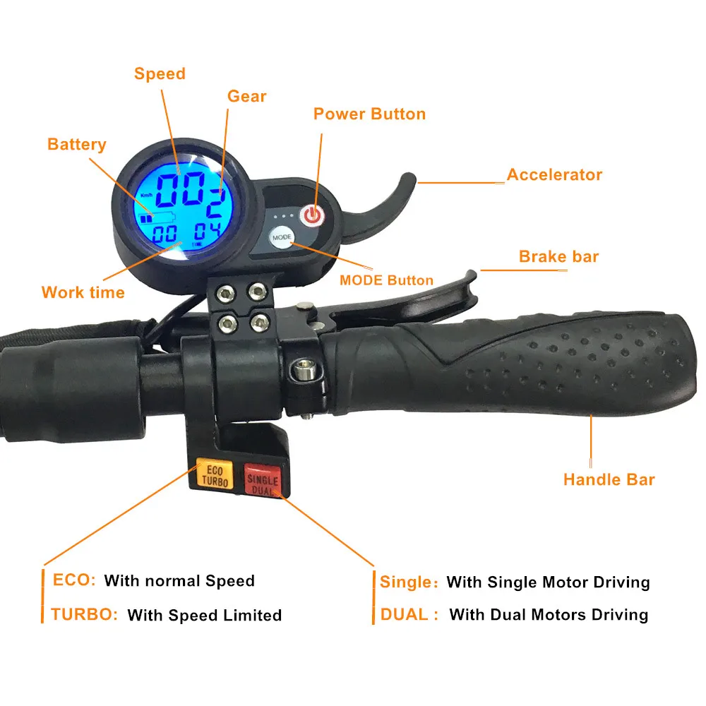 -- С системой сигнализации (дистанционный ключ 2 шт.) -- Двигатель: 60 в/3200 Вт (1600Wx 2 двигателя), два двигателя, -- С двойной подвеской, -- С поворотником светодиодный светильник кой, -- 11-дюймовые колеса (дорожные или внедорожные шины, пожалуйста, выберите это) -- Максимальная нагрузка: около 150 кг -- Максимальная скорость около 65 км/ч -- Хорошие Подвески... -- Вес: около 32-35 кг Диапазон: --- Батарея LG23Ah, может работать 70-80 км --- Аккумулятор LG32Ah, может работать 90-120 км --- Аккумулятор Panasonic 35 Ач, может работать-км (Тест зависит от веса всадника 60 кг, условий ровной дороги, погоды 30 градусов, фиксированной скорости 35 км/ч...)