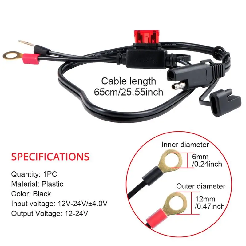 The motorcycle battery cable is built-in 10A big current fuse, which is very safe to use.