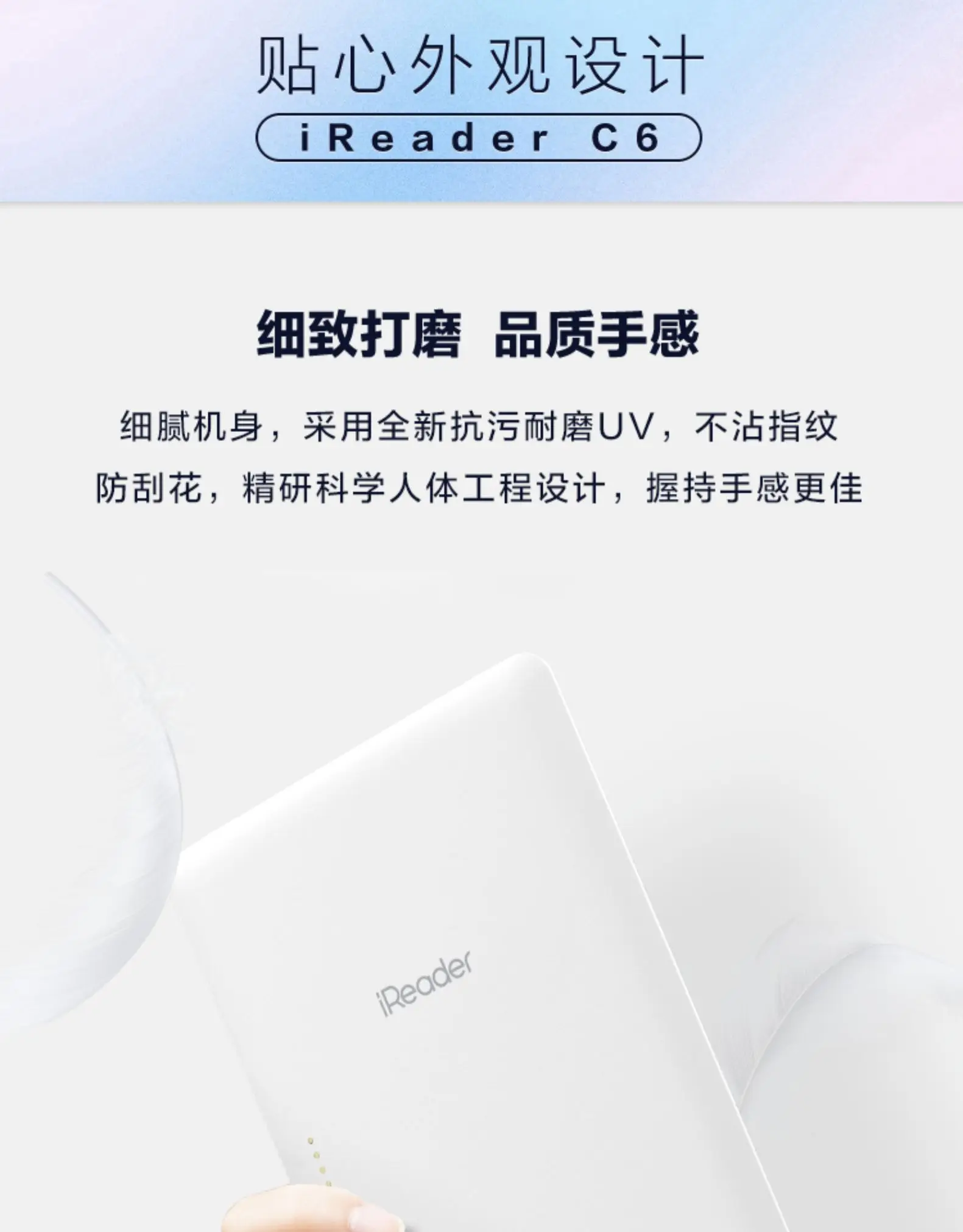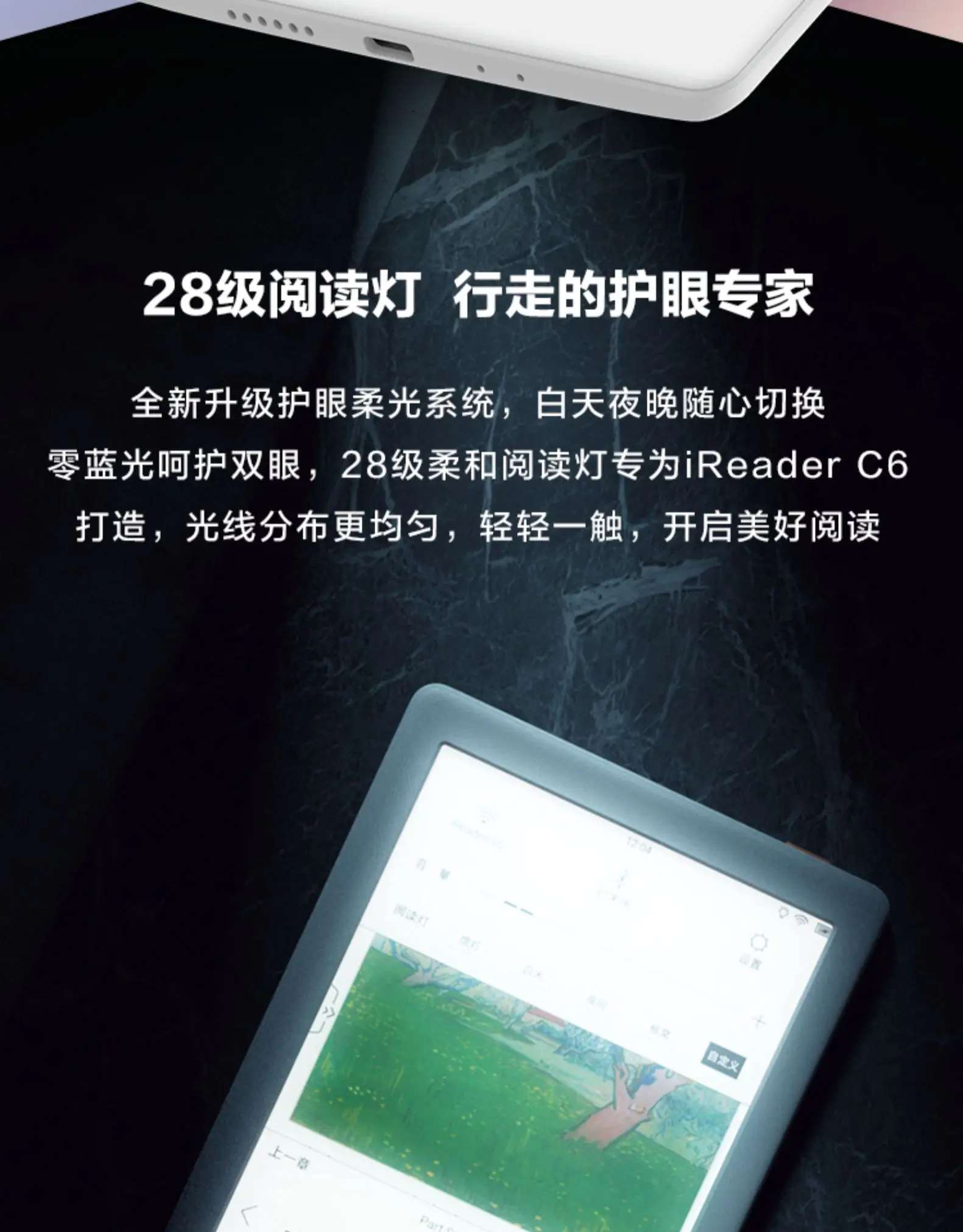 IReader C6 имеет 6-дюймовый емкостный сенсорный экран с 300 PPI и использует новую технологию E INk Print-Color e Paper, иначе известную как Kaleido. Он может отображать более 4000 разных цветов, который пригодится для PDF файлы, газеты, журналы, и просто для чтения электронных книг обложки. Он имеет переднюю систему отображения с 24 светодиодный подсветкой, так что вы сможете читать в темноте. Есть белый и синий светодиодный свет, чтобы изменить яркость экрана. У него нет системы цветовой температуры, и это по хорошей причине. Янтарный светодиодный светильник нарушит цветовую гамму. Под капотом находится четырехъядерный высокоскоростной процессор, 1 Гб оперативной памяти и 16 Гб внутренней памяти. Он имеет встроенные динамики, которые полезны для текста в речь и прослушивания аудиокниг или музыки. Если вы предпочитаете подключить пару беспроводных наушников, у него есть Bluetooth 4,1. Wi-Fi доступ в Интернет в основном используется для доступа к услугам Baidu или для покупки электронных книг. Он весит 150 грамм, 6,9 миллиметров толщиной, светильник и удобные, и может быть держать одной рукой. Он питается от 2000 мА/ч, батарея, которая больше, чем в первую очередь. В настоящее время пользовательский интерфейс находится на китайском языке, и вы не можете использовать его в приложениях. Вы можете загружать свои собственные электронные книги на английском языке и файлы PDF на английском языке и читать их. Он также поддерживает большинство языков для EPUB.