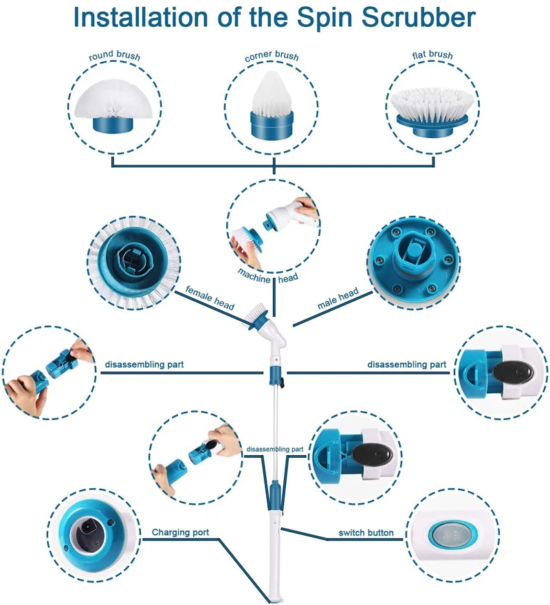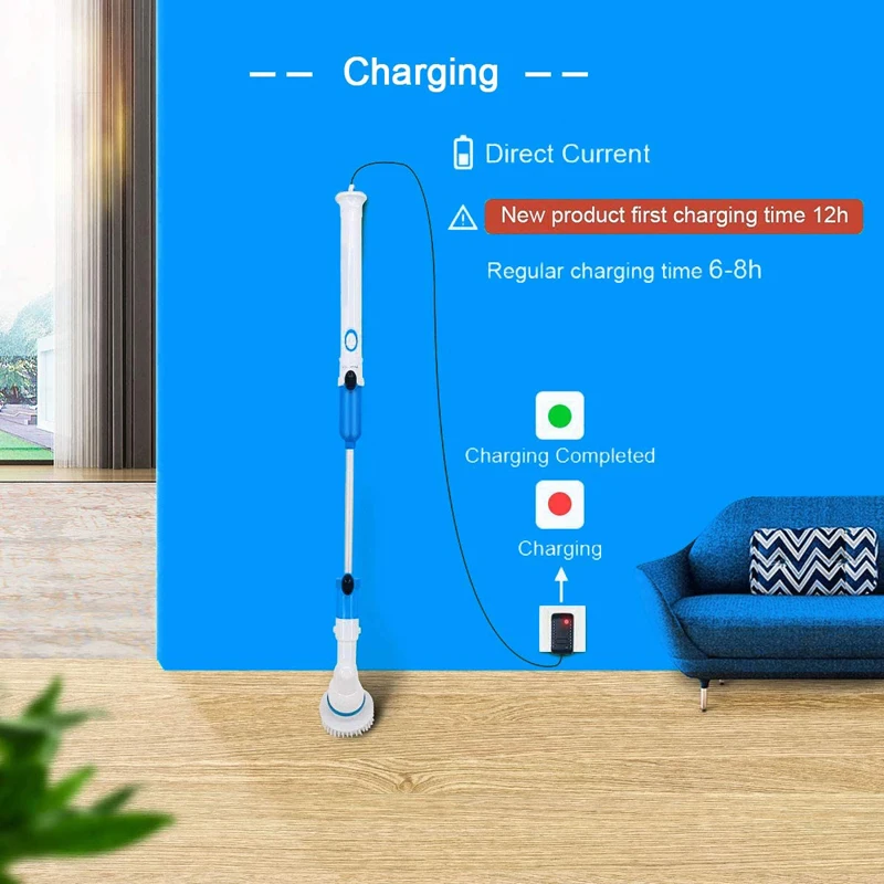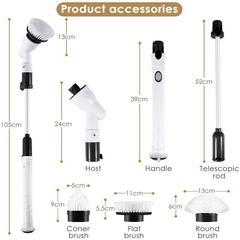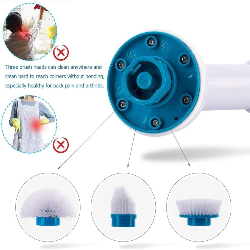 Electric Cleaning Brush Extension Arm Spin Scrubber Cordless Charging Cleaning Tools With 3 Replaceable Scrubber Brush Heads