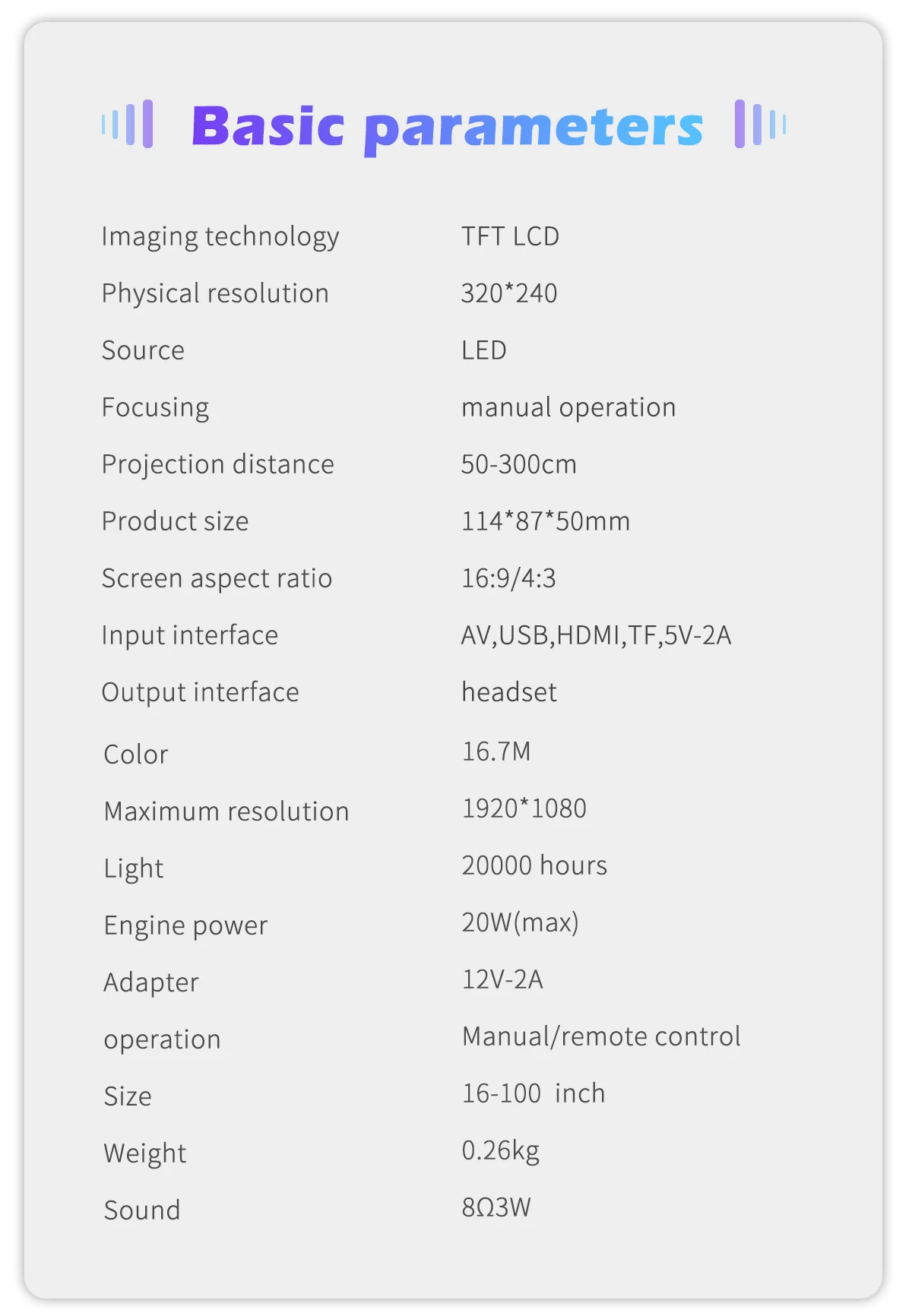 Посылка: ЖК-проектор T300-1 шт., пульт дистанционного управления-1 шт., av-кабель-1 шт., руководство пользователя на английском языке-1 шт.
