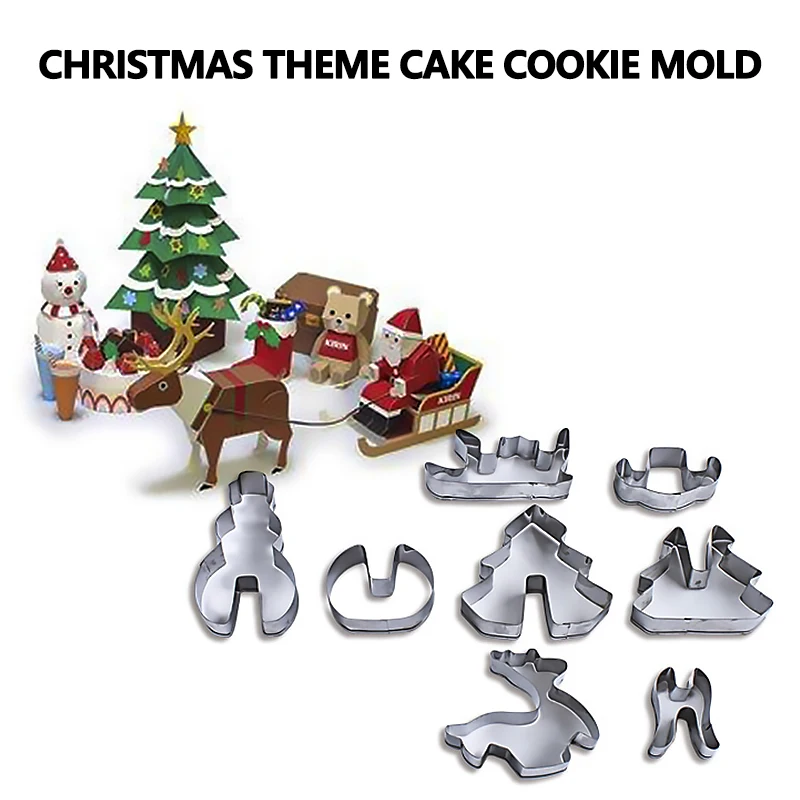 Название продукта: 3D-трехмерная Рождественская сцена, Рождественская елка, снеговик, сани, лось, 8 шт. форма для печенья из нержавеющей стали