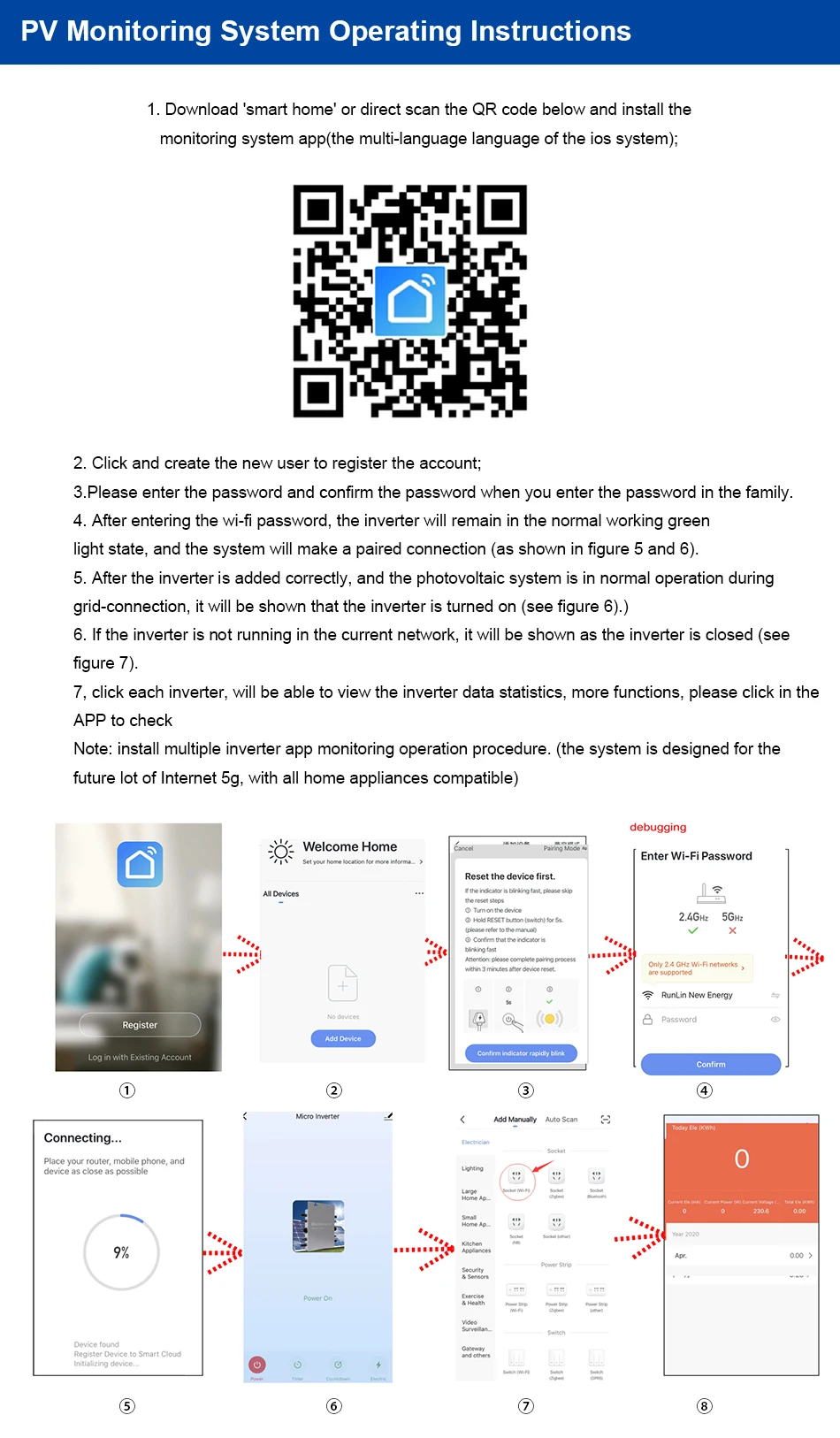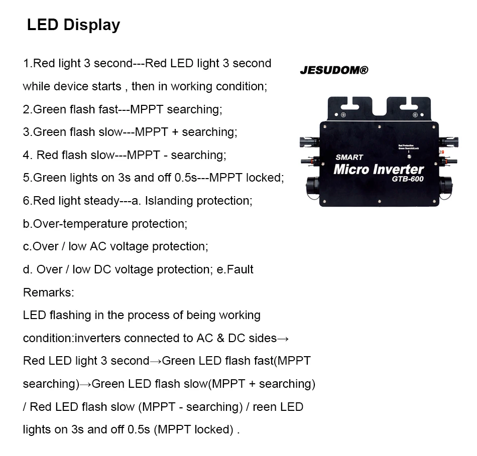 Коммуникация с использованием двух режимов, между инвертором и коллектором с использованием сигналов передачи питания, коллектор с ПК или другими устройствами для связи с использованием последовательного порта RS232/беспроводной связи WIFI. Интеллектуальные системы мониторинга, инвертор может собирать данные в реальном времени, инвертор может управляться запуском/выключением/регулированием мощности.