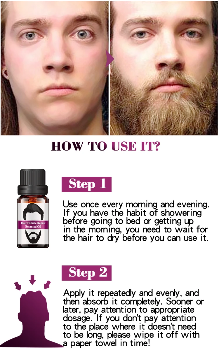 Богатые растительными ингредиентами, восстанавливают волосяные фолликулы, делают их толще и прочнее, добавляют питательные вещества, необходимые для волос, улучшают окружающую среду волосяных фолликулов, делают бороду черной, плотной, здоровой и яркой.