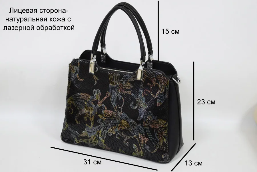 Лицевая сторона - натуральная кожа с лазерной обработкой. Остальные части сумки из полиуретана (PU)