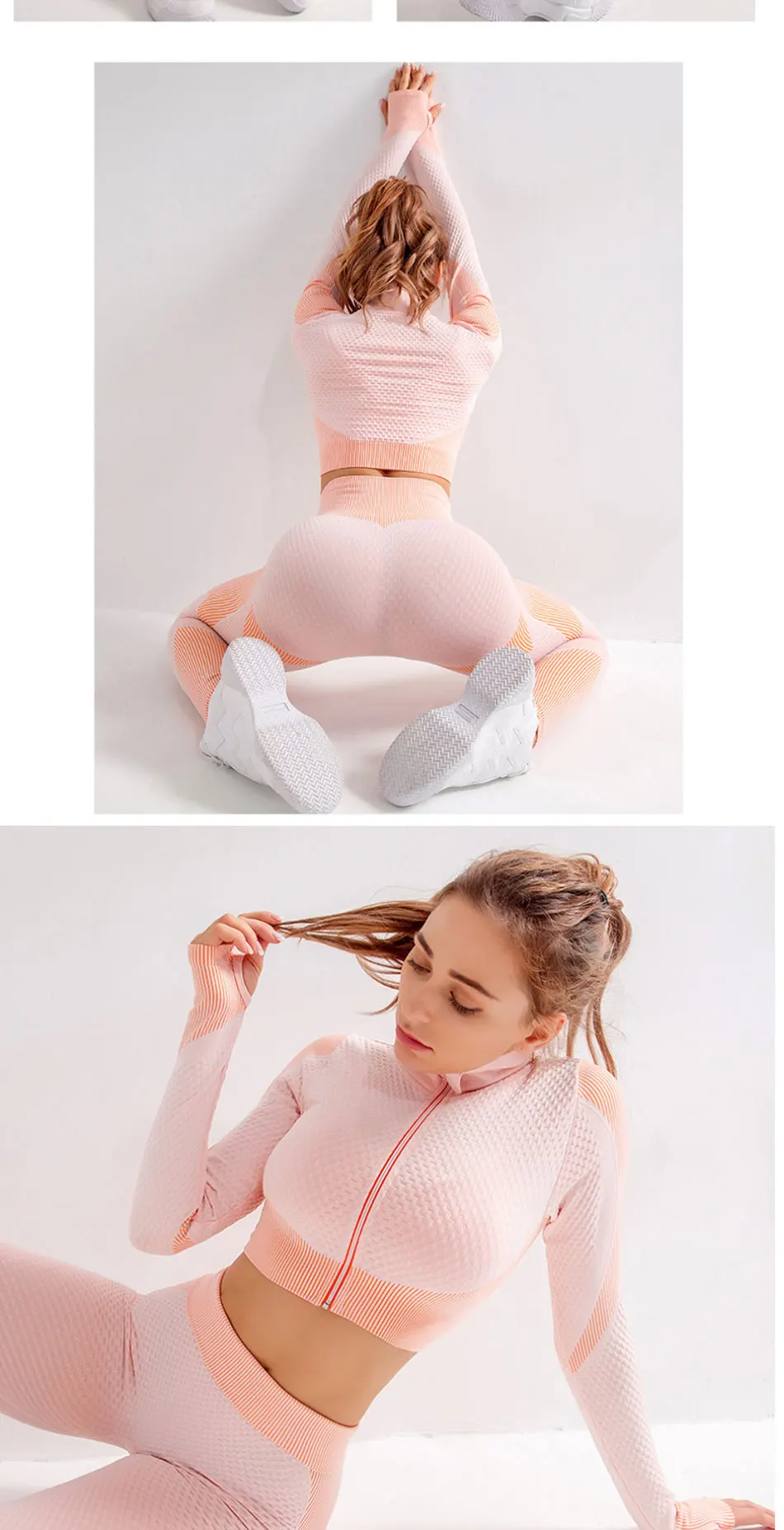 [Product Name] Sports Suit [Size] S,M,L [Material] Nylon,spandex [Season] Spring,Summer,Autumn and Winter. [Feature] Breathable,Quick-drying,Colorfast; [Use For] Fitness,Yoga,Gym,Running,Training,Outdoor,Basketball,Dancing,Etc Note: 1. Please select the size according to the size of the table,Please allow 1-3cm error,because manual measurement different ways,thanks. 2. There maybe a very little chromatic aberration between the picture and the real picture,Because the different camera angles and lighting. 3. 3. This 2-piece set can be matched with a single bra,