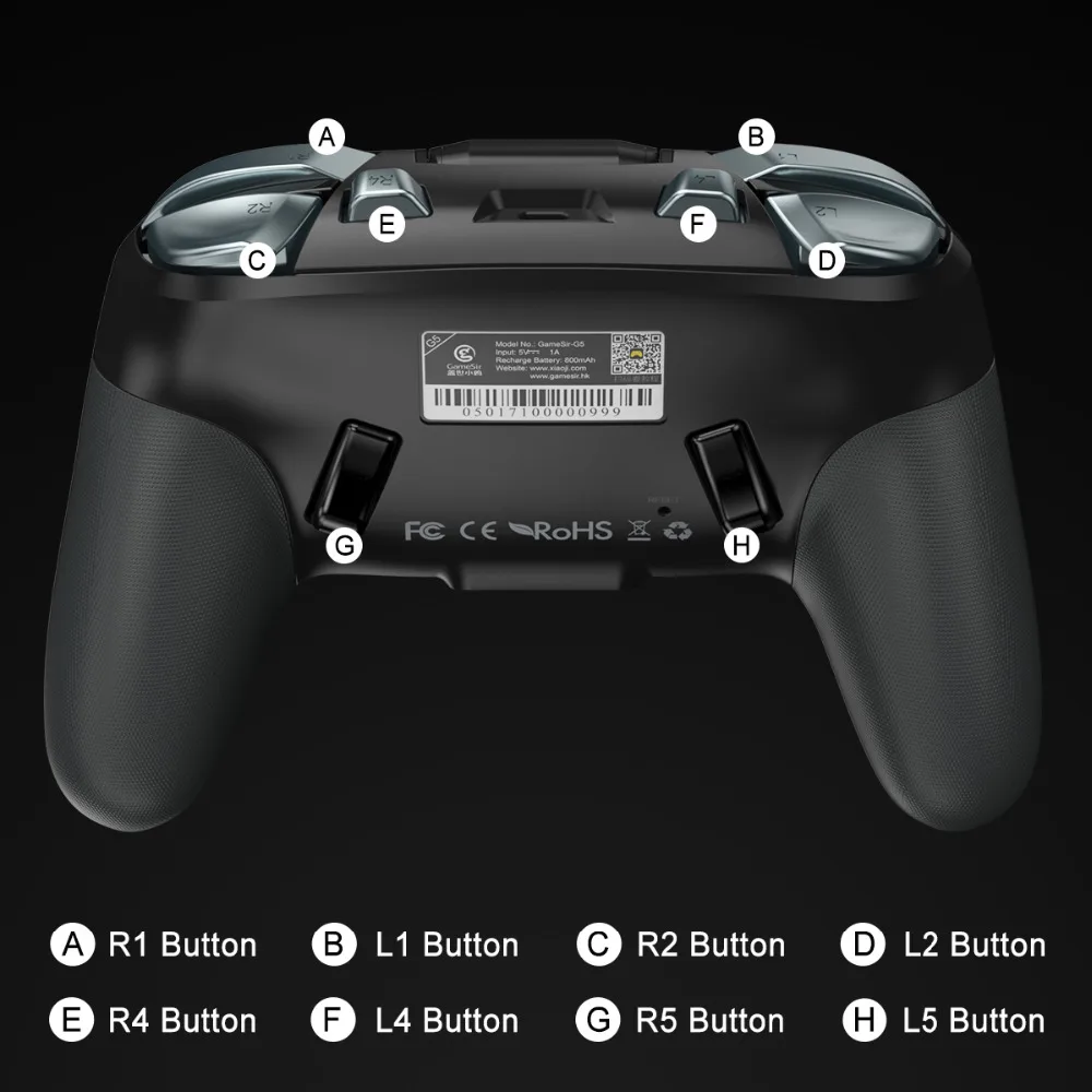 Полнохаптический трекпад Трекпад реагирует и чувствителен, чтобы точно отслеживать ввод пальцев. Это позволяет вам нажимать, перетаскивать, чтобы заклинание или перемещать камеру вокруг в стреляющих играх. Дизайн с 8 кнопками Вокруг трекпада находятся кнопки, с новым макетом и дизайном, Кнопки предназначены для имитации многофункциональных горячих клавиш, которые работают для разных случаев. Механические триггеры Четыре дополнительные настраиваемые кнопки на плече и сзади Двойные плечевые триггеры L4/L5 и двойные задние кнопки L5/R5. Он поддерживает пользовательское назначение любой функции кнопки в соответствии с потребностями. Встроенная функция BattleDock Кроме геймпада, GameSir G5 также является BattleDock, когда вы кладете его на рабочий стол. Чтобы даже стимулировать потенциал игрового контроллера следующего поколения, мы добавили чип BattleDock в GameSir G5 и превратили его в конвертер клавиатуры мыши, когда он остается на столе. Usb-порт для мыши и клавиатуры скрыт под резиновой левой ручкой. Снимите резиновый слой, вставьте беспроводной ключ для мыши и используйте собственную мышь и клавиатуру для игры! Эргономичный дизайн Геймпад эргономичный. Мы исследовали более 200 геймеров в широком диапазоне возрастов и разработали форму контроллера, которая максимально подходит большинству игроков. Эргономичный захват защищает игроков от травм рук и избавляет от усталости рук от длительной игровой сессии.