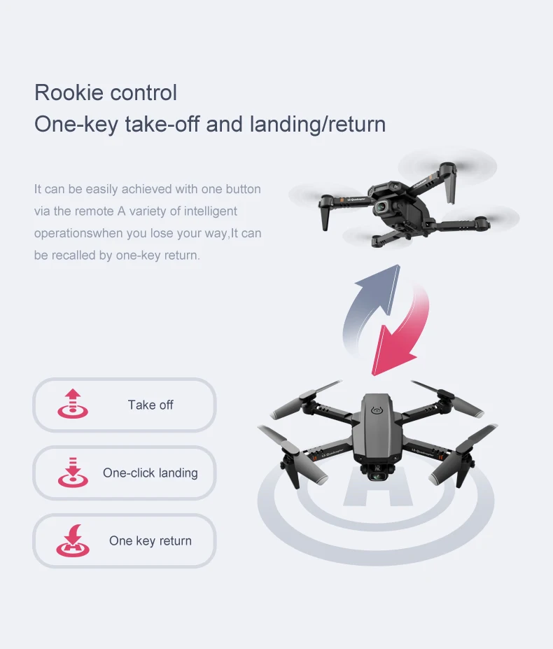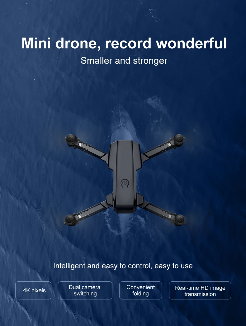 1: руки складываются, маленькие по размеру и легко переносятся. 2: с функцией удержания высоты, стабильность полета. 3: в безголовом режиме нет необходимости регулировать положение самолета перед полетом. 4: Используйте функцию возврата одной кнопкой, чтобы легко найти путь домой. 5: встроенная камера высокой четкости 500 Вт/4K пикселей, удивительно, она может снимать Потрясающие фотографии и видео с неба. 6: с функцией Wi-Fi, он может быть подключен к приложению и системе APK, и делать фотографии, видео и передачу в режиме реального времени через мобильный телефон изображения камеры. 7: нарисуйте траекторию полета на экране, и Дрон будет летать автономно по указанному пути. 8: 2,4 ГГц технологии анти-помех. 9: 4 канала, способные на подъем, спуск, вперед, назад, левый полет, правый полет и поворот на 360 °. 10: шестиосевой гироскоп, полет более стабильный и более удобный контроль. 11: светодиодный светильник делает полет более эффектным, особенно в темноте. Функции s: вверх/вниз, вперед/назад, влево/вправо, боковой полет, светодиодный свет, режим Безголового движения, автоматическое возвращение с одной клавишей, режим удержания высоты, wiFi FPV (двойной объектив с двойной функцией переключения объектива)