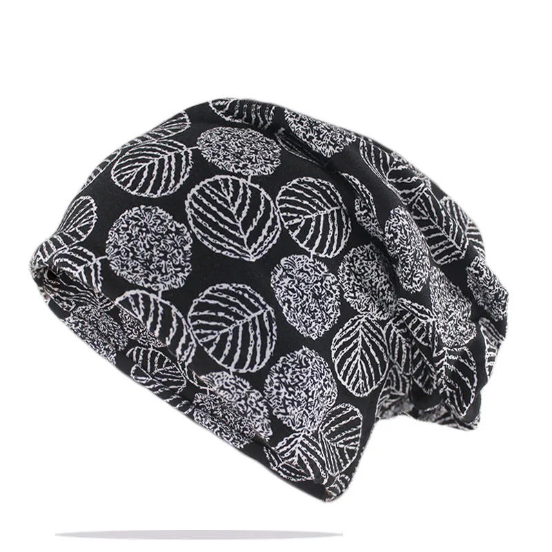 Хит продаж, женские теплые шапки Sa;e на весну-осень, модные шарфики для девочек с цветочным принтом, с листьями, с двойным использованием, Повседневная шапка, шарф для женщин, Gorras Bone Размер: 52-60 см Подходит для большинства людей