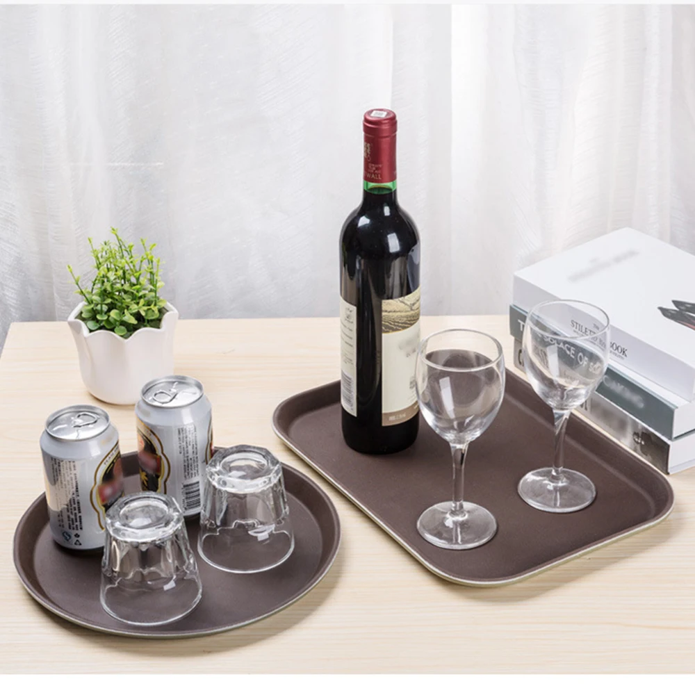 Textured Surface: items not easy to slide around and scratch-resistant. Tray is easy to clean, and you can put a cloth napkin on it to keep the surface clean.