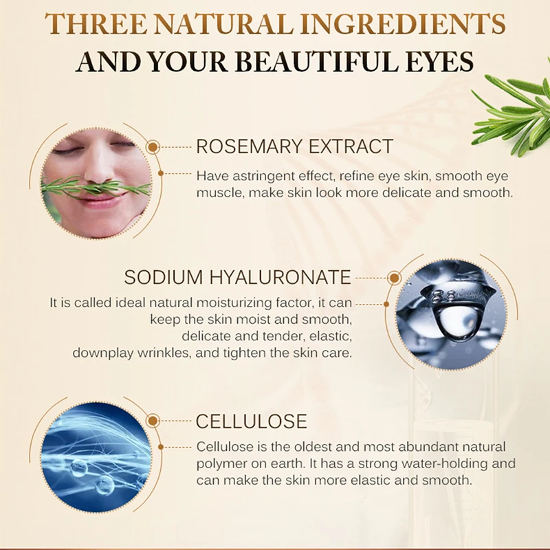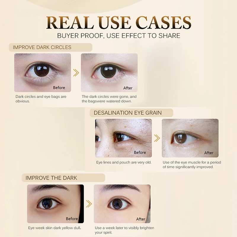 Эффект: улучшает кожу глаз, удаляет отечность и темные круги, контур глаз улучшает Предотвращение мелких морщин, создавая яркие глаза для мешков под глазами против возраста