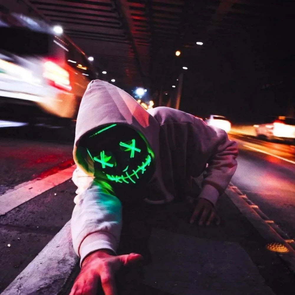 2. Эта маска изготовлена из высококачественного ПВХ и El холодный светильник, без УФ-повреждений, без побочных эффектов на тело человека.