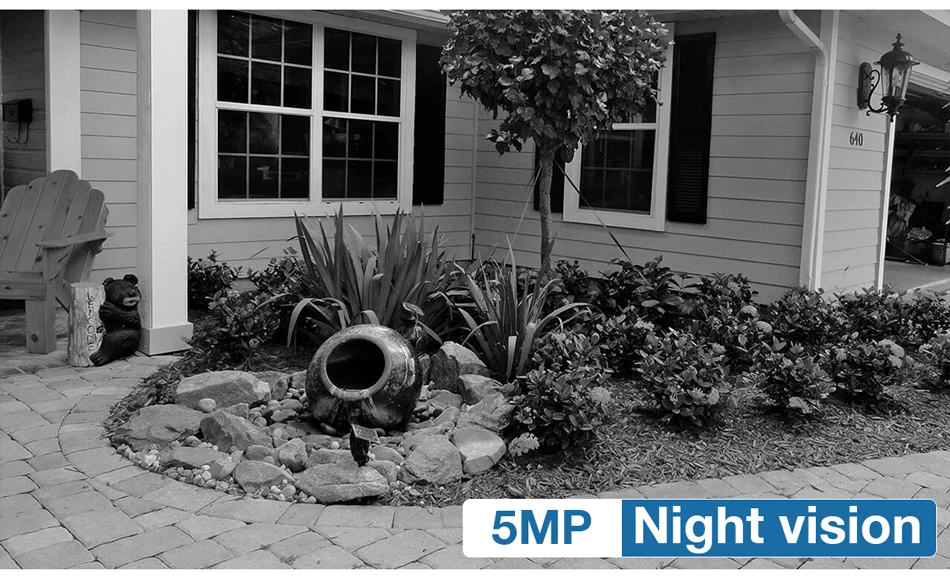 Изображение высокой четкости 5 МП, супер инфракрасное ночное видение, H265 видео.