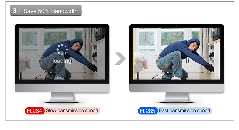 H.265 более четкий, HD разрешение предлагает вам лучшее качество изображения в более низкой скорости. Экономьте больше места для хранения, вы можете уменьшить размер файлов 40%-50%, сэкономить место для хранения HDD и снизить стоимость покупки.