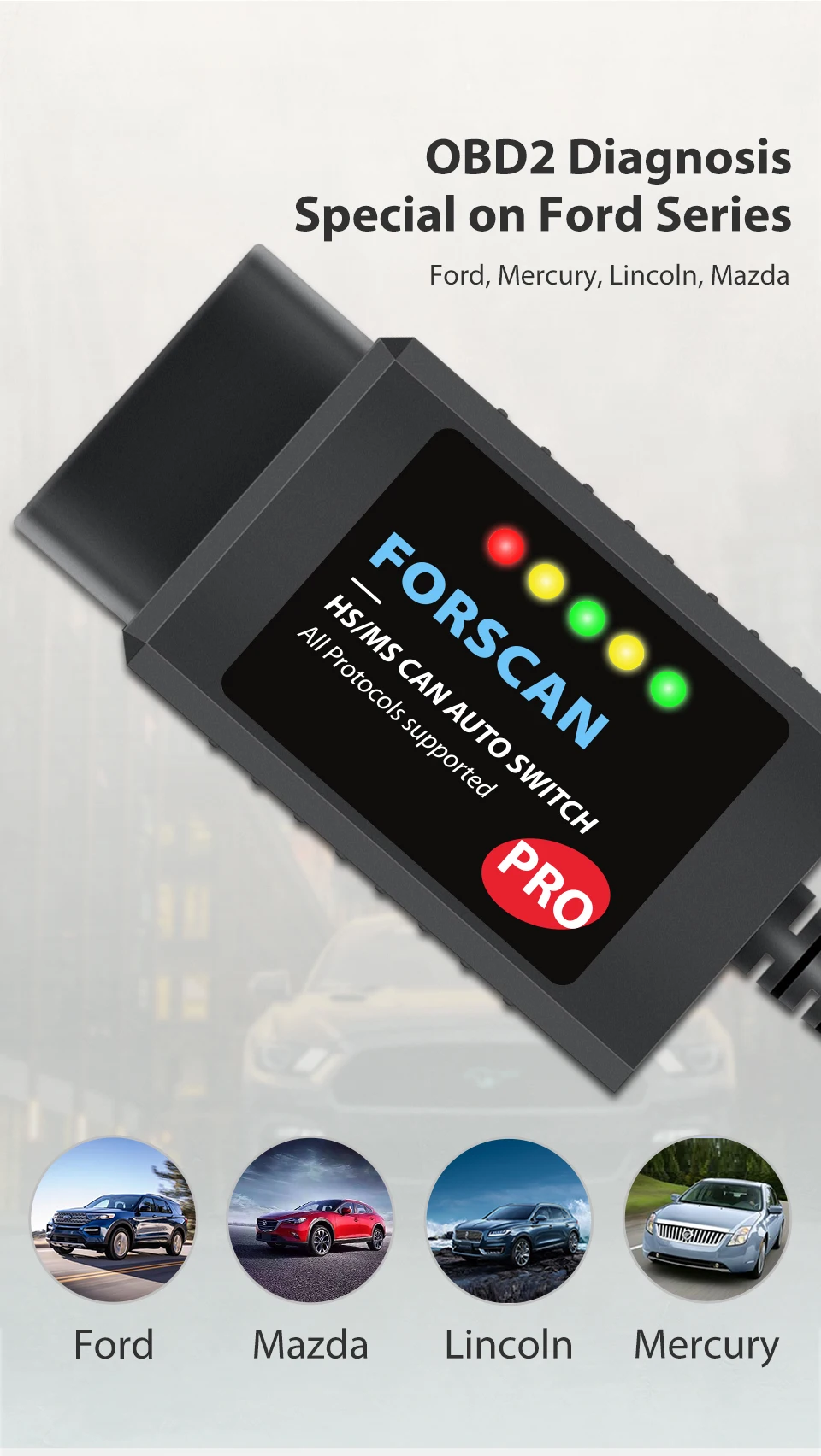 ELM327 V1.5 HS/MS-CAN сделано для FORScan Pro Инструмент для сканирования автомобиля для Ford серии транспортных средств Скрытая функция программирования OBD2 диагностический сканер