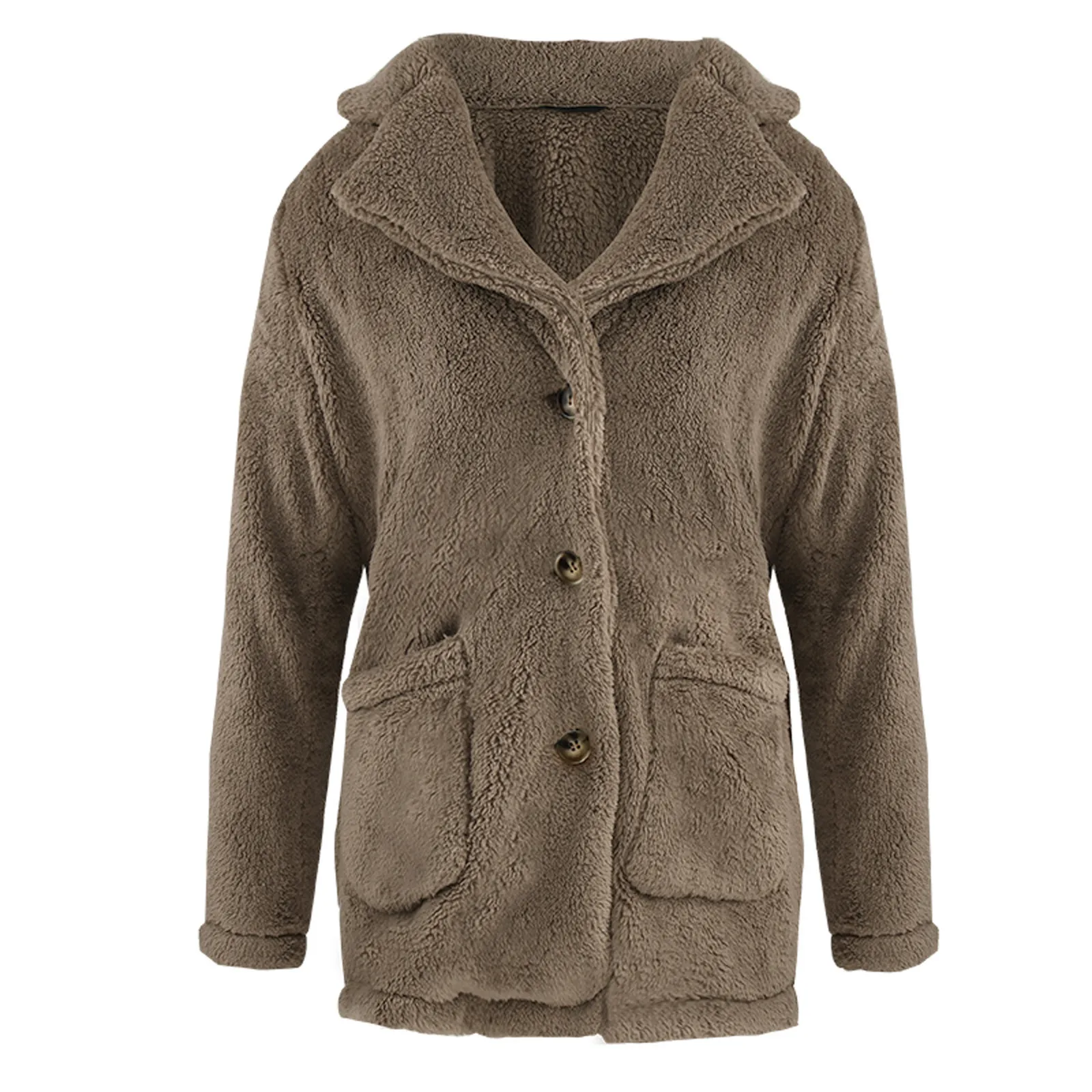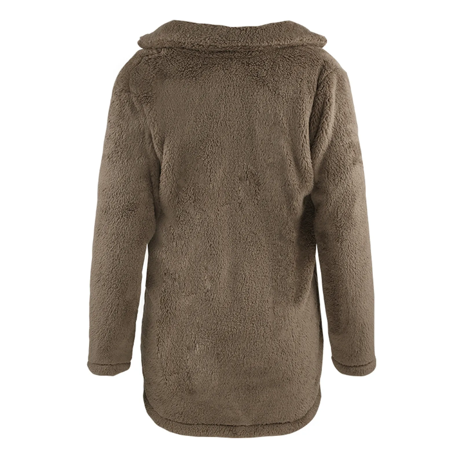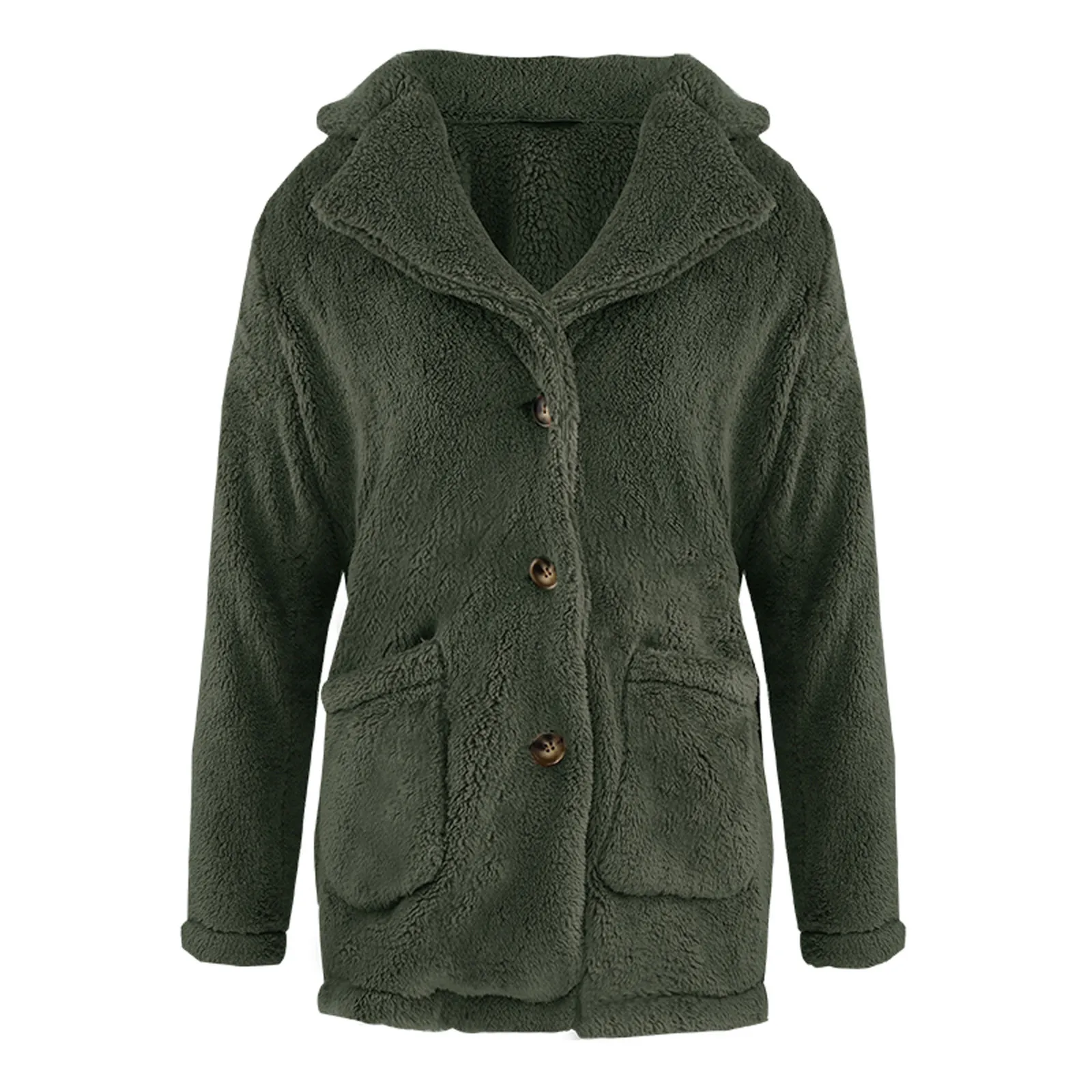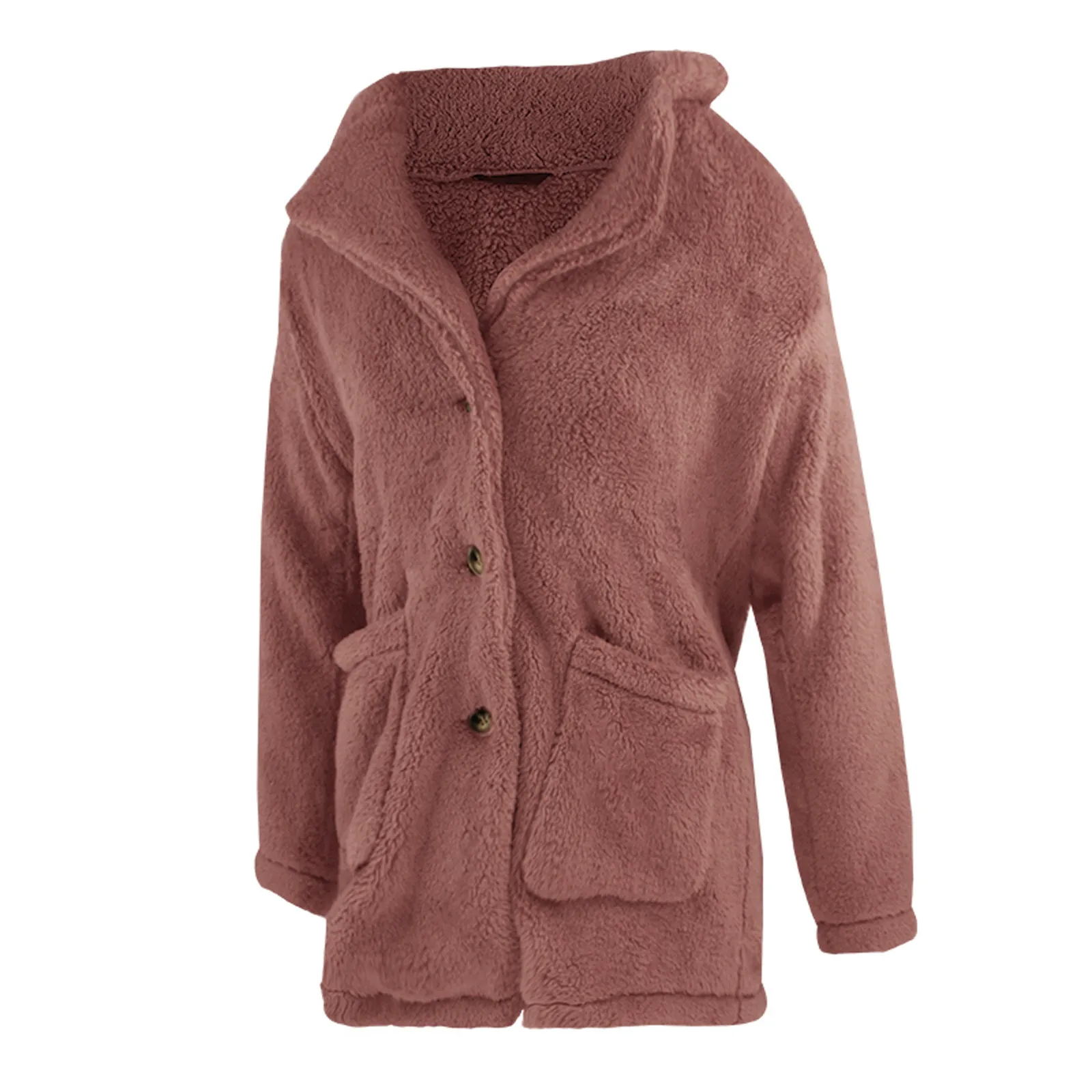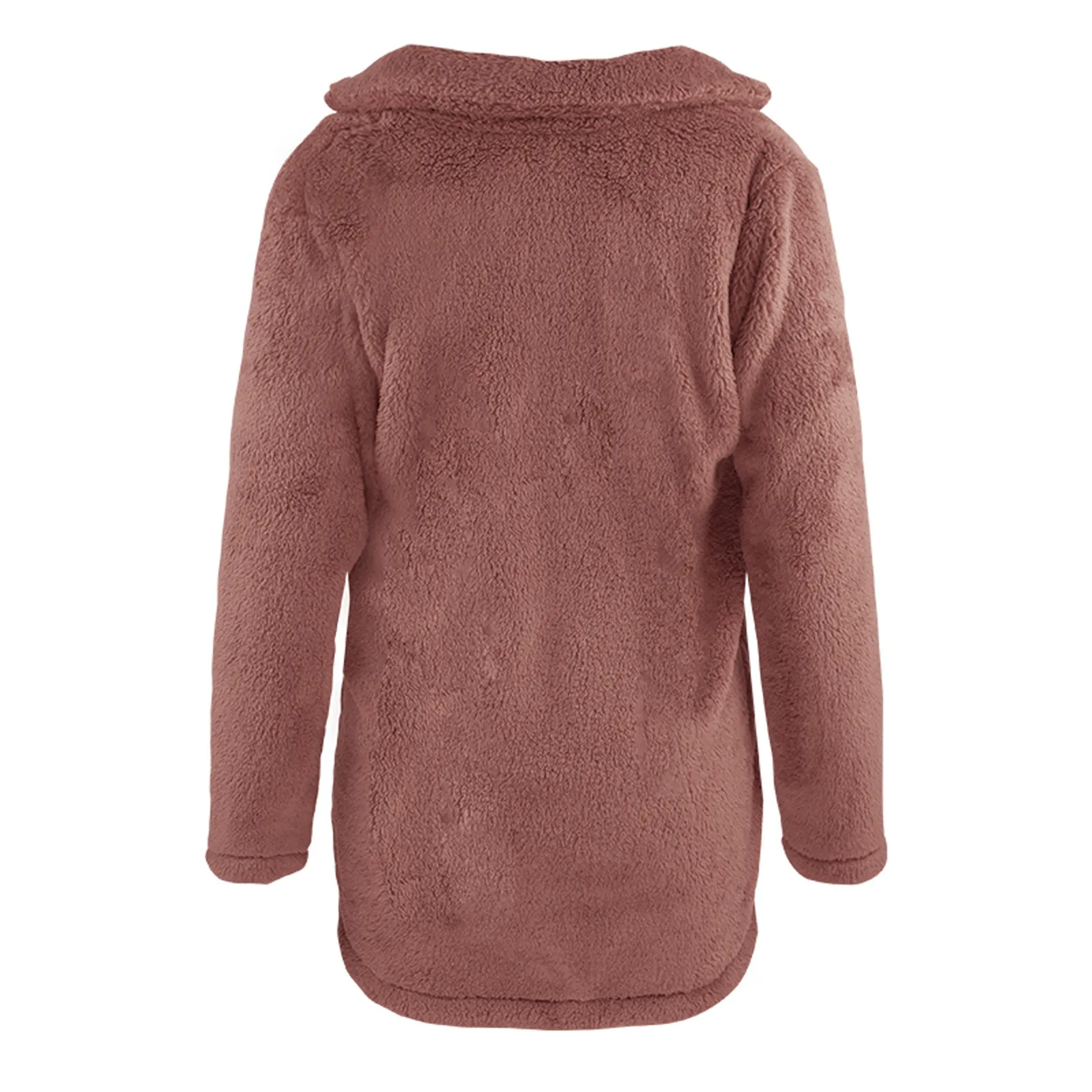 Женский однотонный флисовый кардиган с карманами и длинными рукавами на пуговицах, теплое пальто