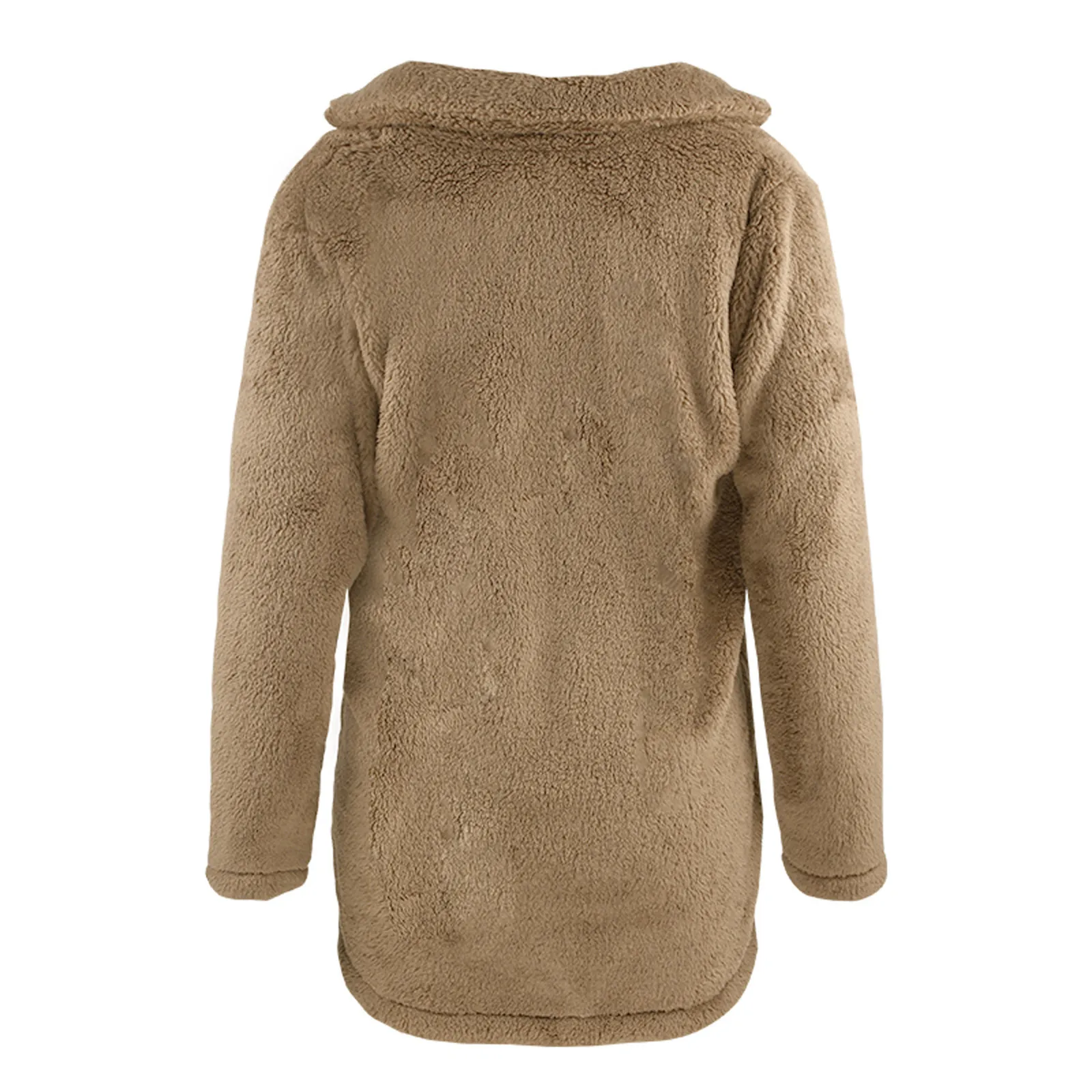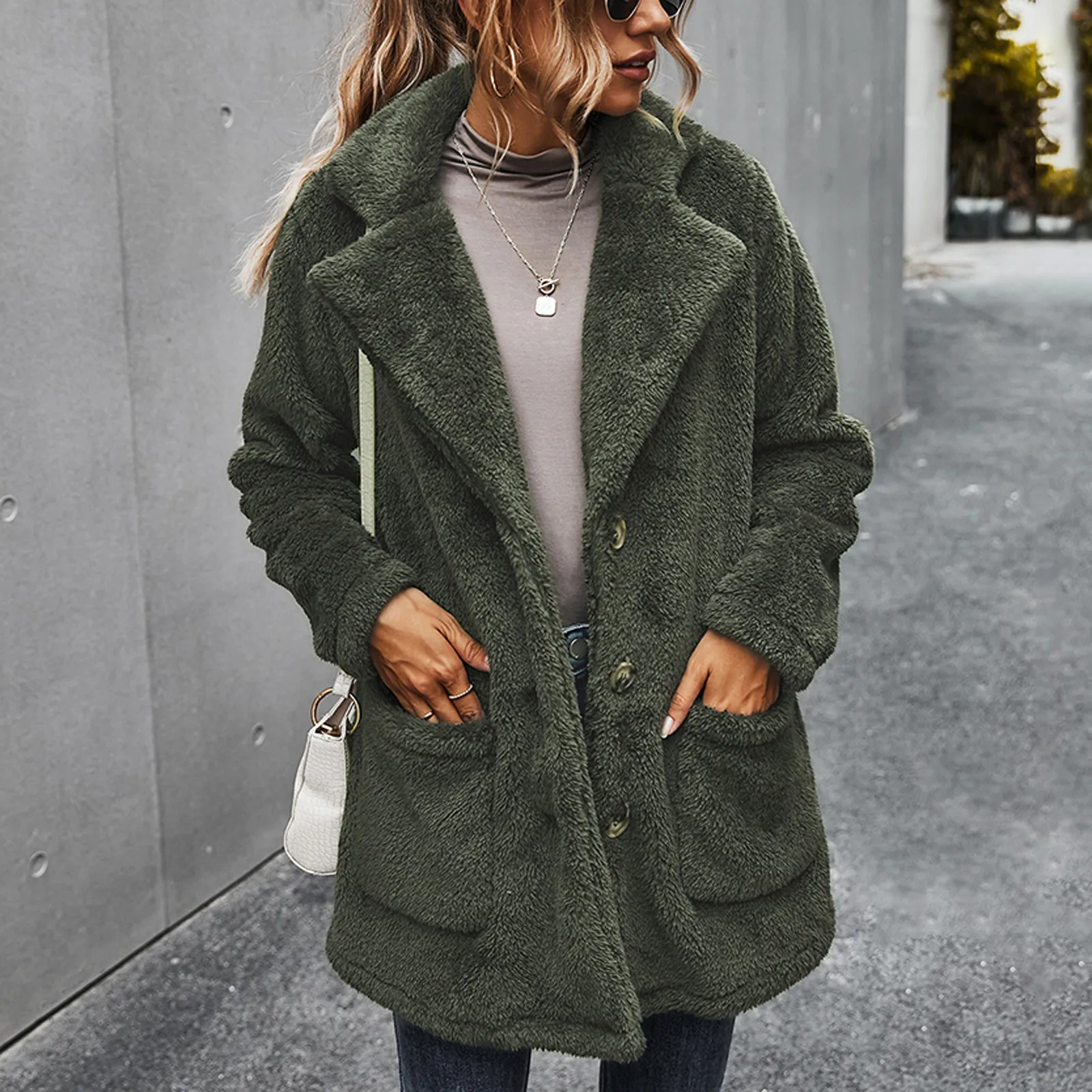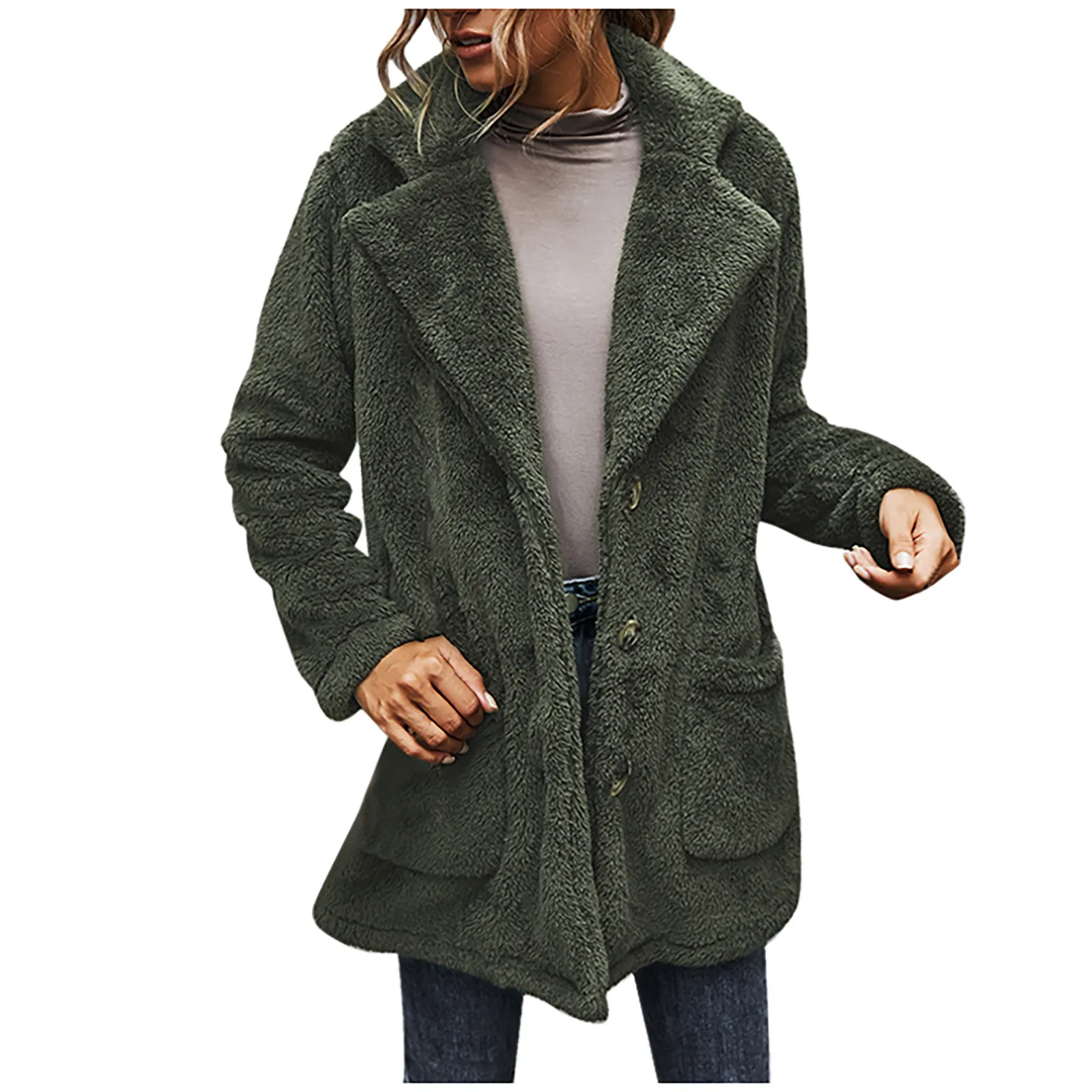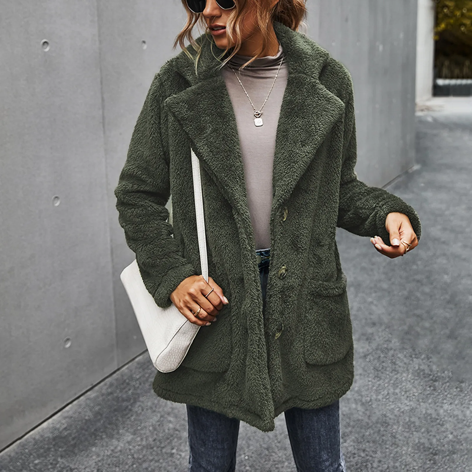 Женский однотонный флисовый кардиган с карманами и длинными рукавами на пуговицах, теплое пальто