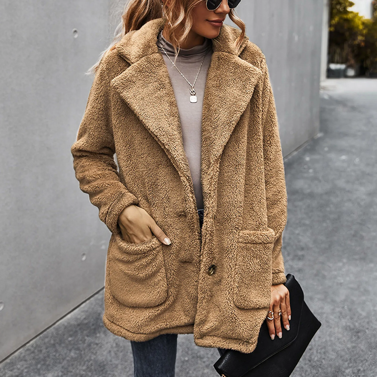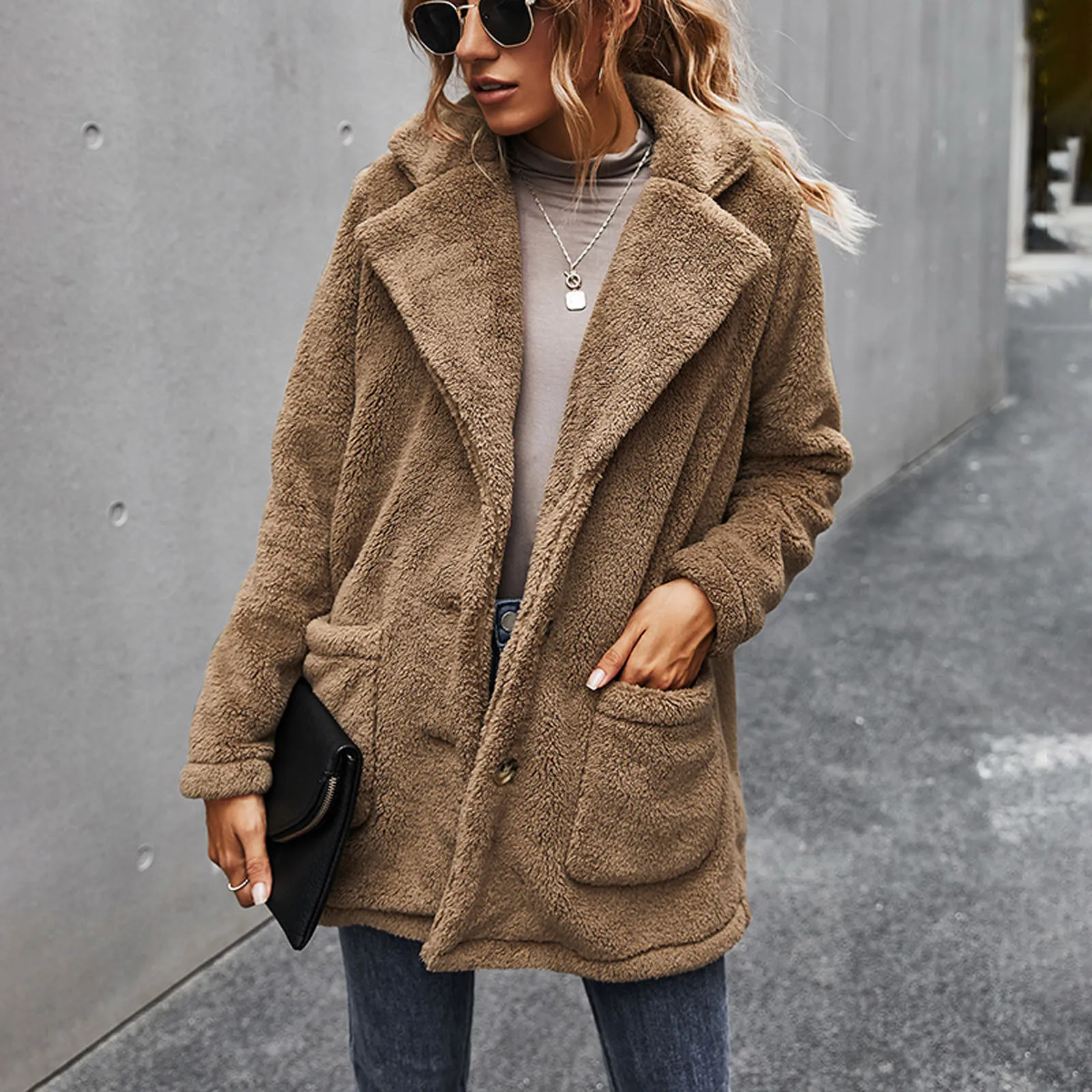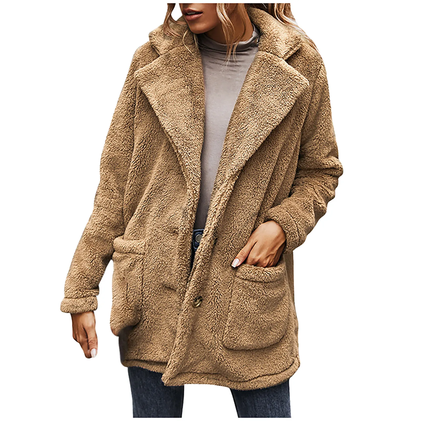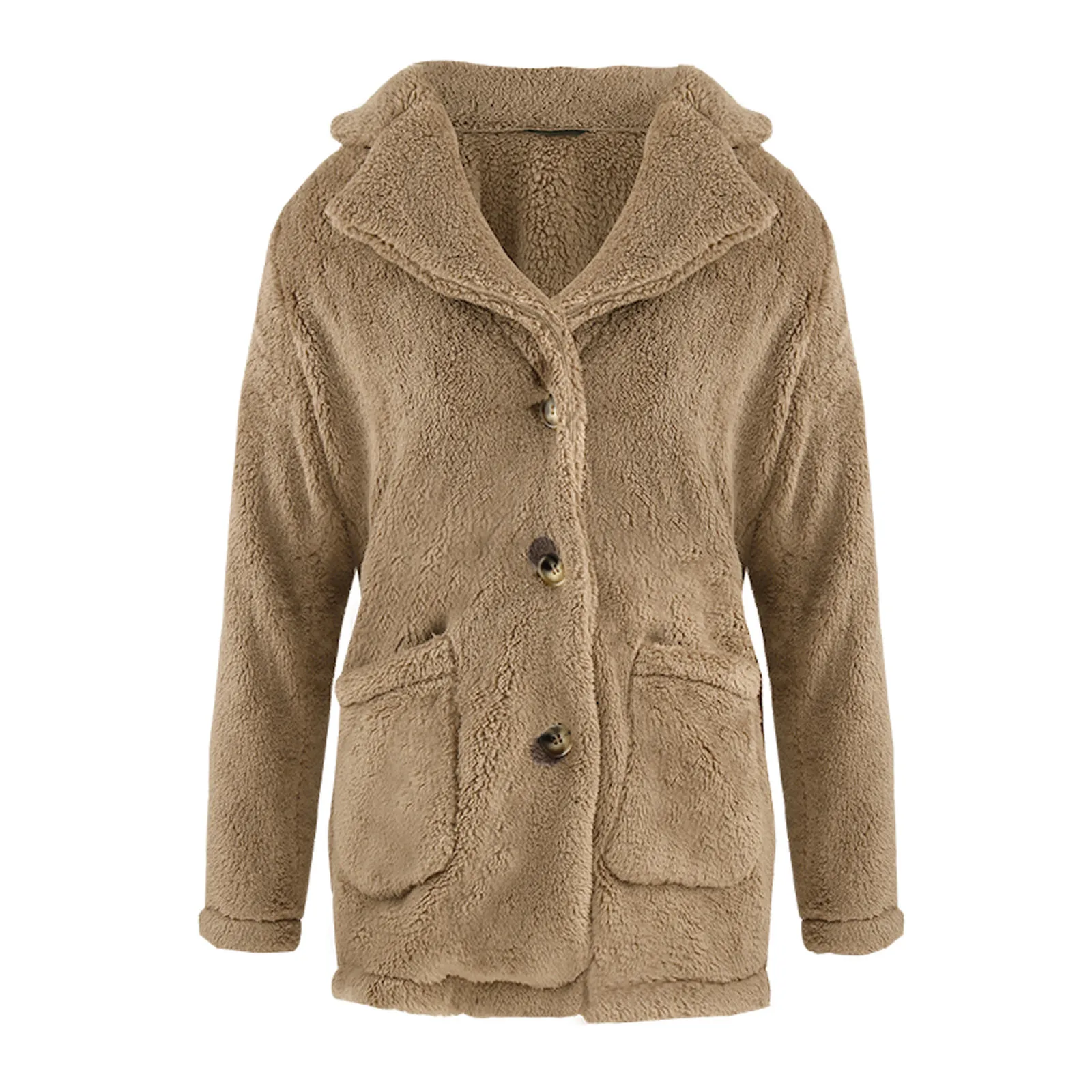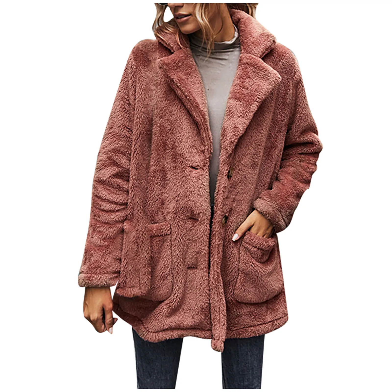 Женский однотонный флисовый кардиган с карманами и длинными рукавами на пуговицах, теплое пальто