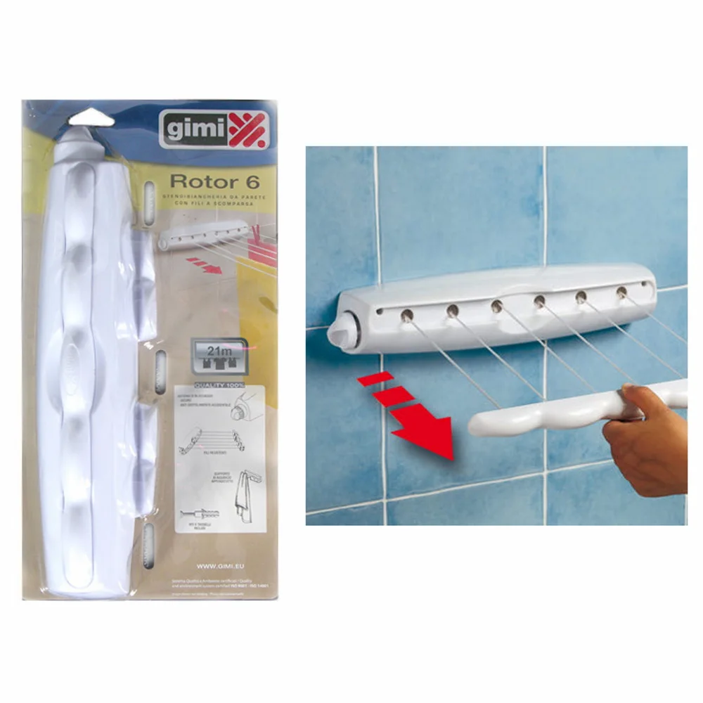 Настенная сушилка для белья с автоматически втягивающимися струнамиот итальянского производителя Gimi.