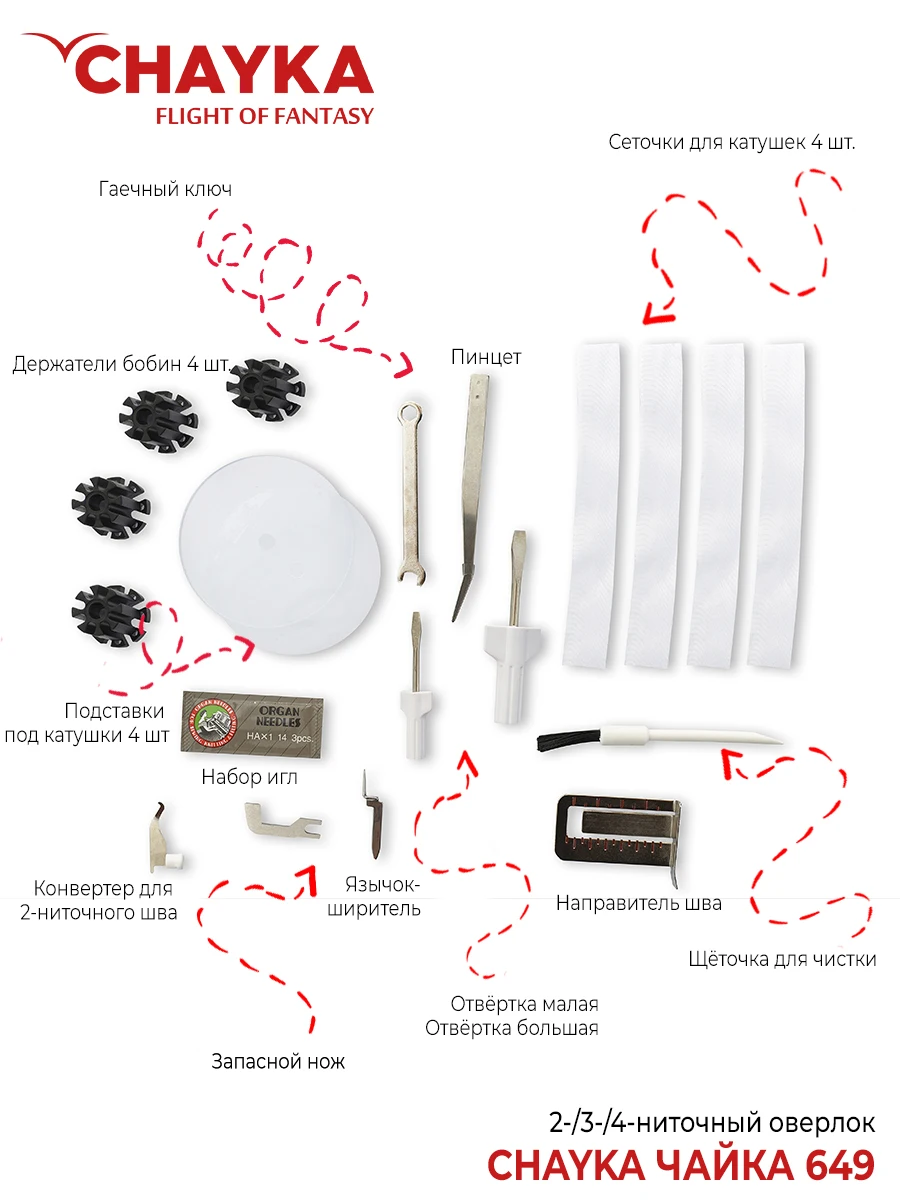 CHAYKA оверлок ЧАЙКА 649 – современный 2/3/4-ниточный оверлок.