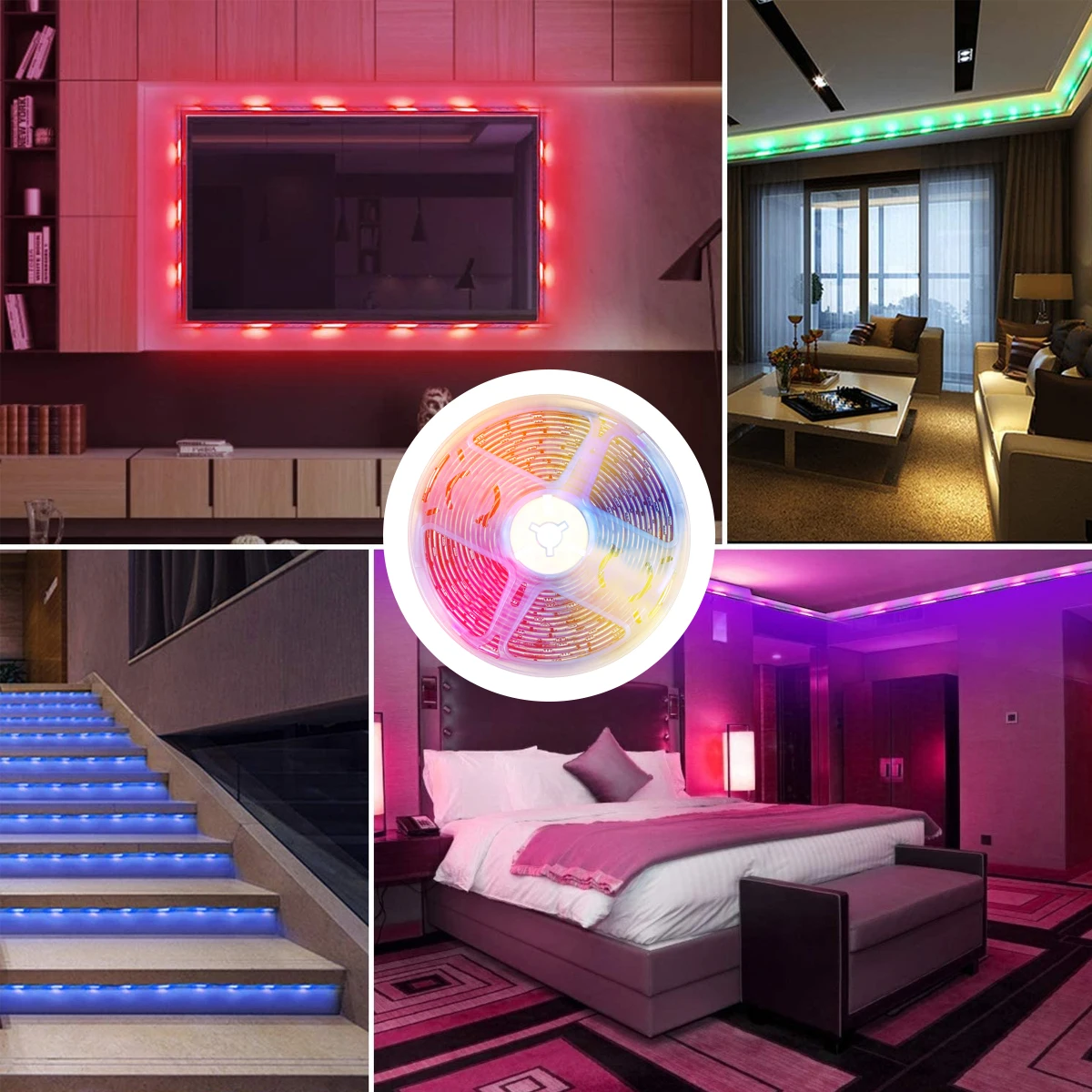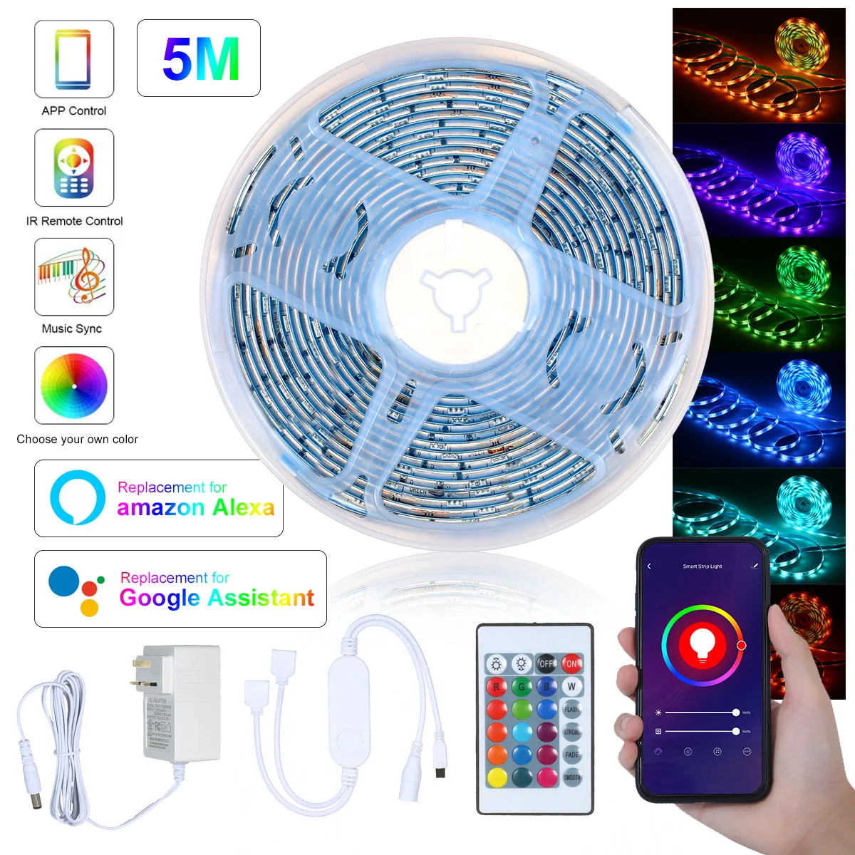 Синхронизация с музыкой светодиодный с регулируемой яркостью-Встроенный микрофон с высокой чувствительностью этот светодиодный RGB полосы света цвет изменится с музыкальными ритмами или микрофоном. Умный светодиодный wifi с регулируемой яркостью и динамическими режимами, с мигающим, стробоскопическим, тусклым, гладким на выбор.