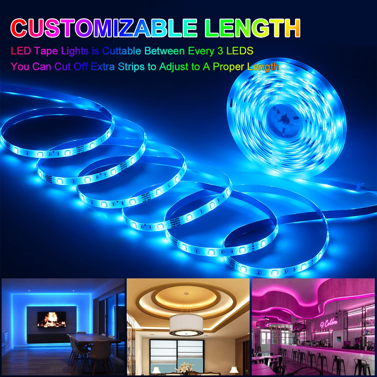Безопасная Светодиодная лента Легкая установка-Рабочее напряжение 12 В постоянного тока, очень низкое тепло, сенсорная и безопасная для детей. Класс водонепроницаемости IP67 отлично подходит для использования в помещениях r, чтобы украсить вашу спальню, кухонный шкаф, веранду, а также использовать как праздничный светильник. Светодиодные ленты разрезаются между каждые 3 светодиодами. Задняя часть ленты с самоадензивной лентой может поместиться на любой сухой и плоской поверхности. Гибкий для установки в любом месте.