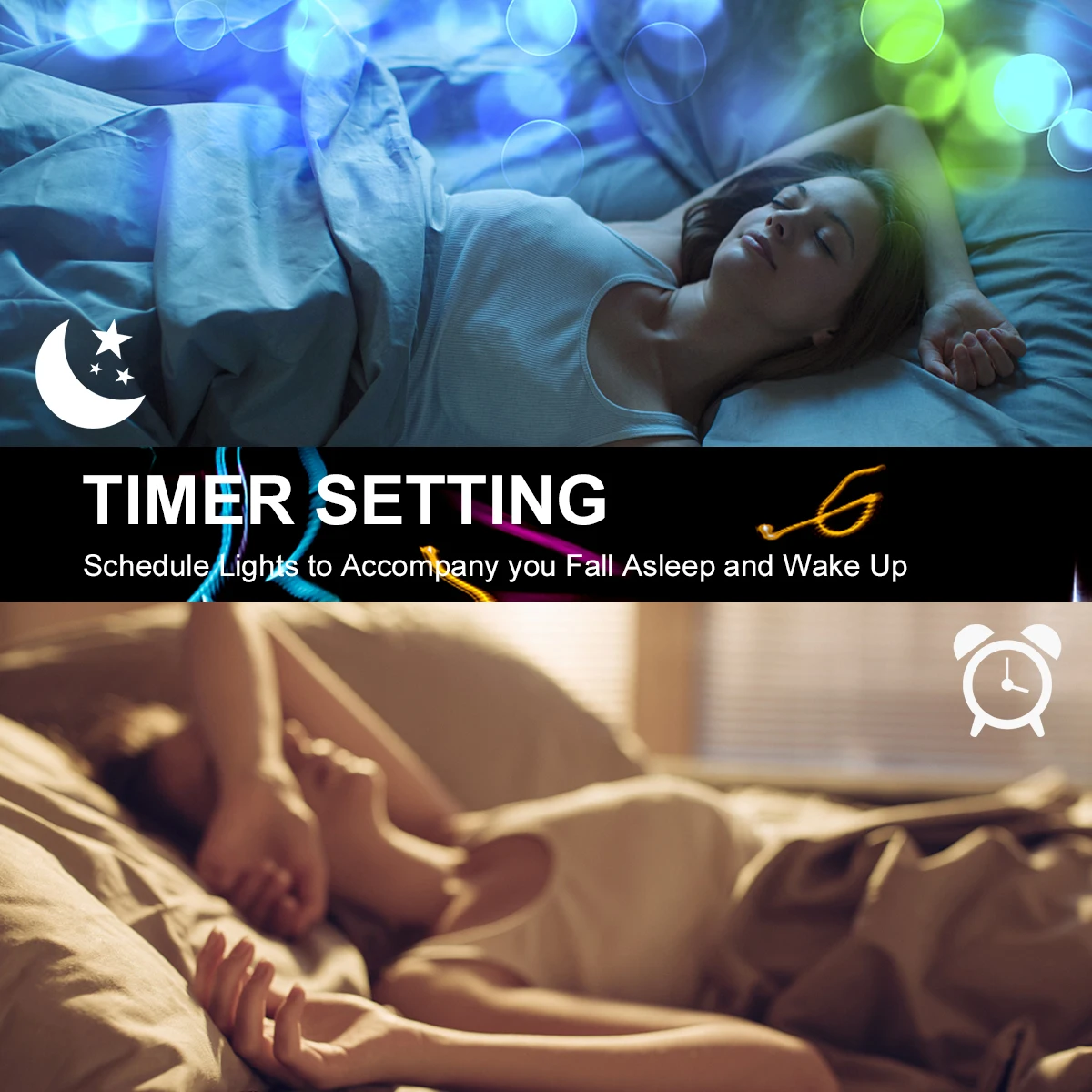 Функция таймера-через умное приложение, вы можете запланировать светильник ВКЛ/ВЫКЛ в определенное время. И это может светильник или светильник выключается автоматически каждый день, вы никогда не будете беспокоиться о том, чтобы выключить светильник или нет. Вы можете сэкономить энергию.