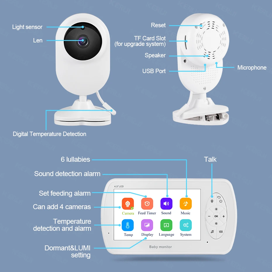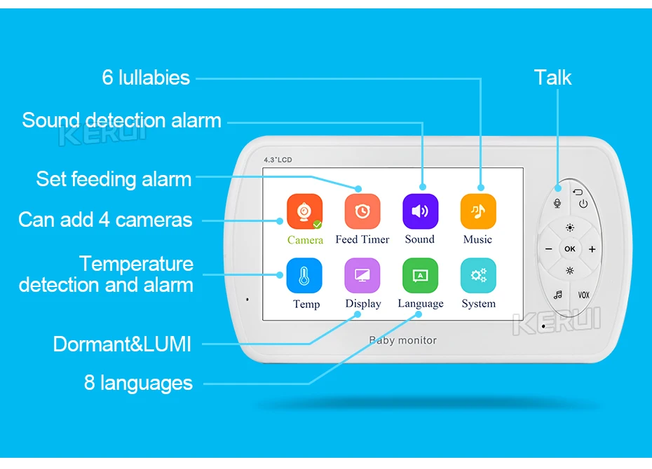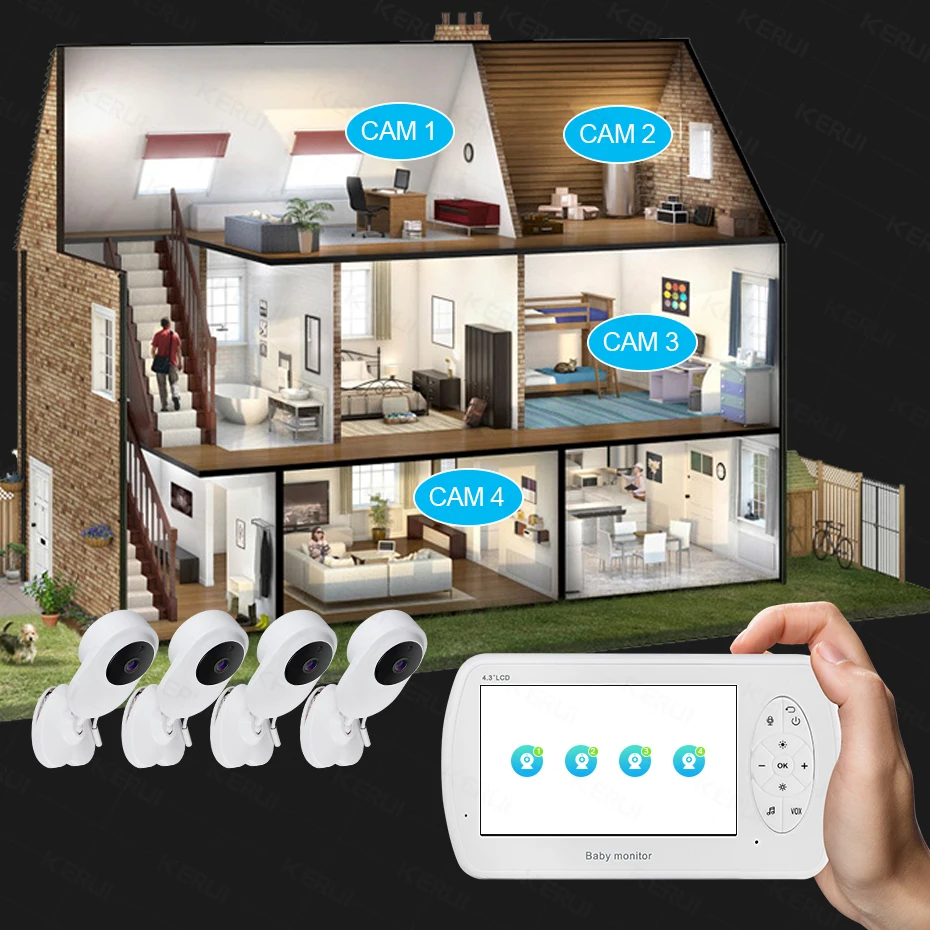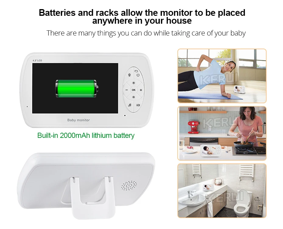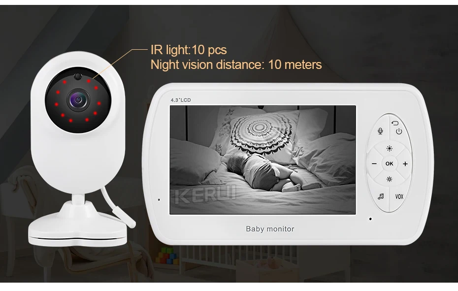 KERUI 4,3 дюймов беспроводной видео радионяня 2 Way Talk младенца Няня камеры безопасности в режиме VOX, контроль температуры, камера для наблюдения