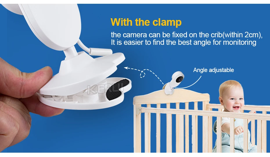 Камера имеет зажим, которая может быть установлена для легкого зажима на детской кроватки.
