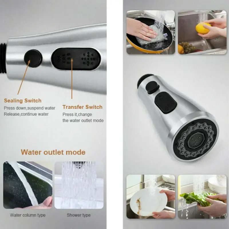 Designed with pause, spray and stream 2 modes. Easily switch between 2 modes by pushing button.