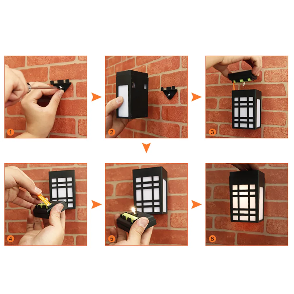 Легкая Для установки. Вы можете просто установить светодиодный лампа на солнечной батарее с датчиком движения на Стена прочно с включенными винтами. Кабели и провода не требуются. Идеальный Высота установки составляет около 1,7 до 2 метров (5,6-6,6 футов).
