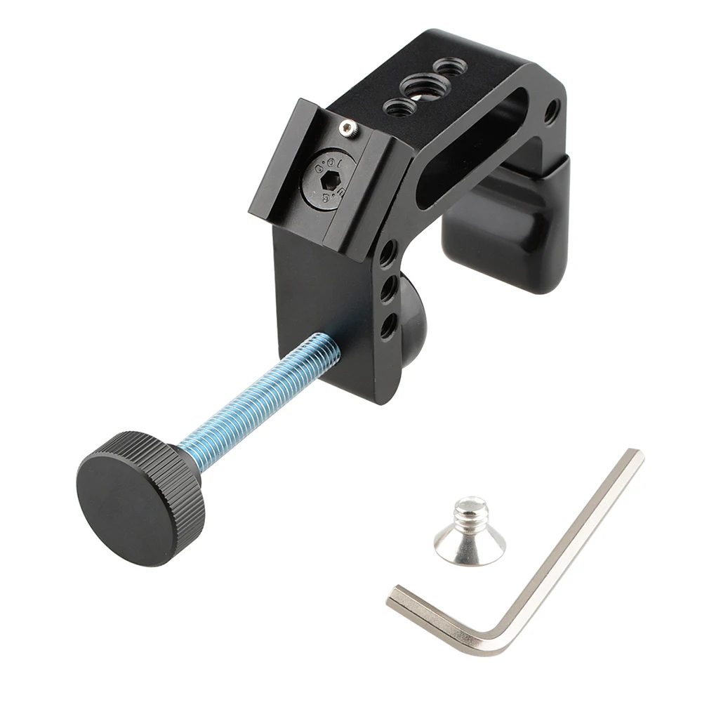 Для универсального использования • с резьбовыми отверстиями 1/4 "-20 и 3/8"-16 • Минимальный диаметр отверстия: 3 мм • Максимальный диаметр отверстия: 42 мм • Материал: алюминий, резина и металл Описание: • Универсальный c-зажим с креплением для холодной горячей обуви легко крепится к вашему устройству с креплением для обуви на столы, тележки, скамейки, рабочие столы, стойки, И т. д. такие как микрофон, светодиодный светильник и так далее. • C-хомут расширяется от 3 мм до 42 мм в ширину. Он обеспечивает резьбовые отверстия 1/4 "-20 и резьбовые отверстия 3/8"-16 для крепления аксессуаров. Вес нетто: 150,4 г посылка включает в себя: 1 x Универсальный c-зажим Настольный Держатель подставка с креплением для холодной горячей обуви 1 x Монтажный винт 1 x шестигранный ключ