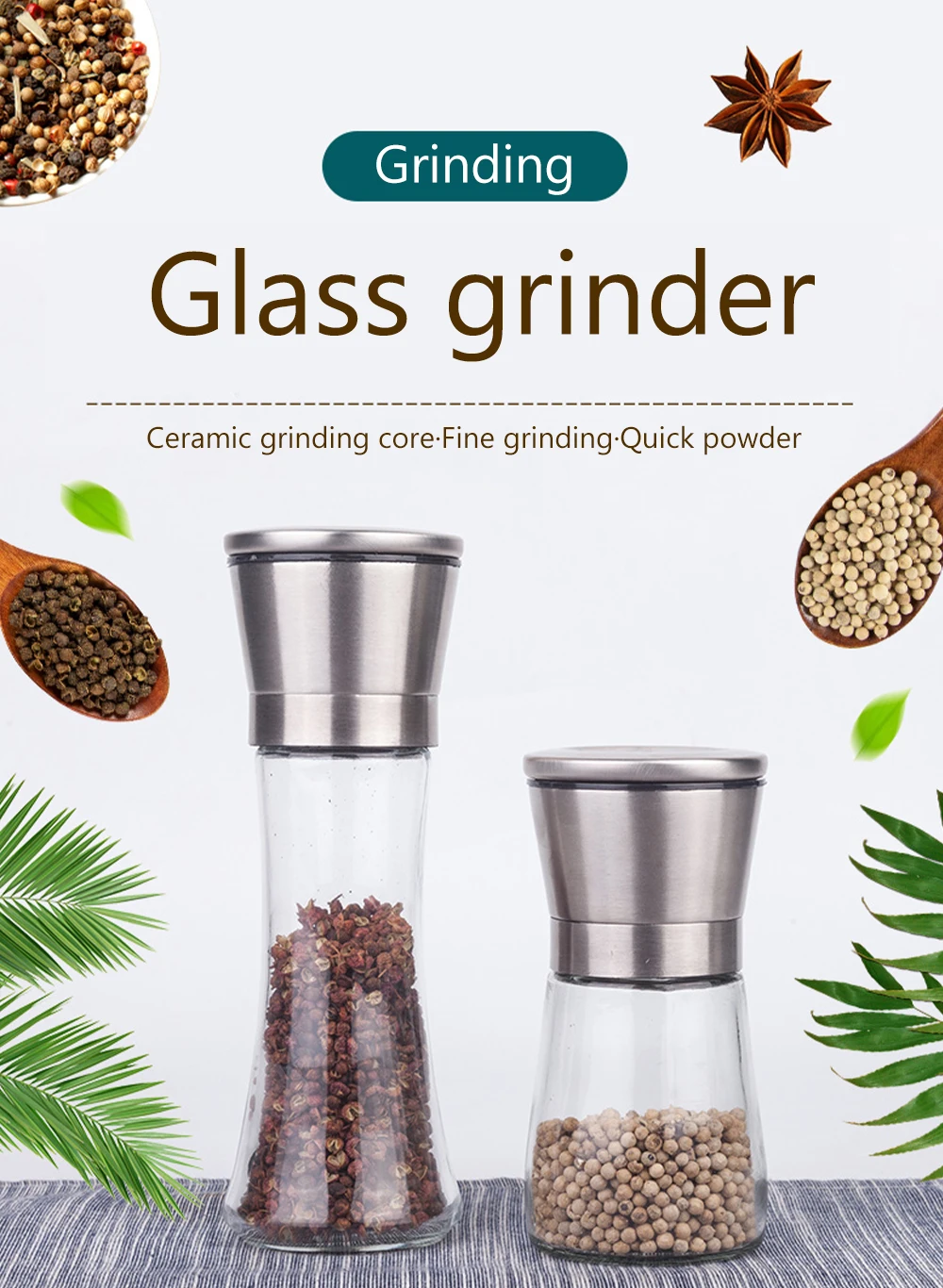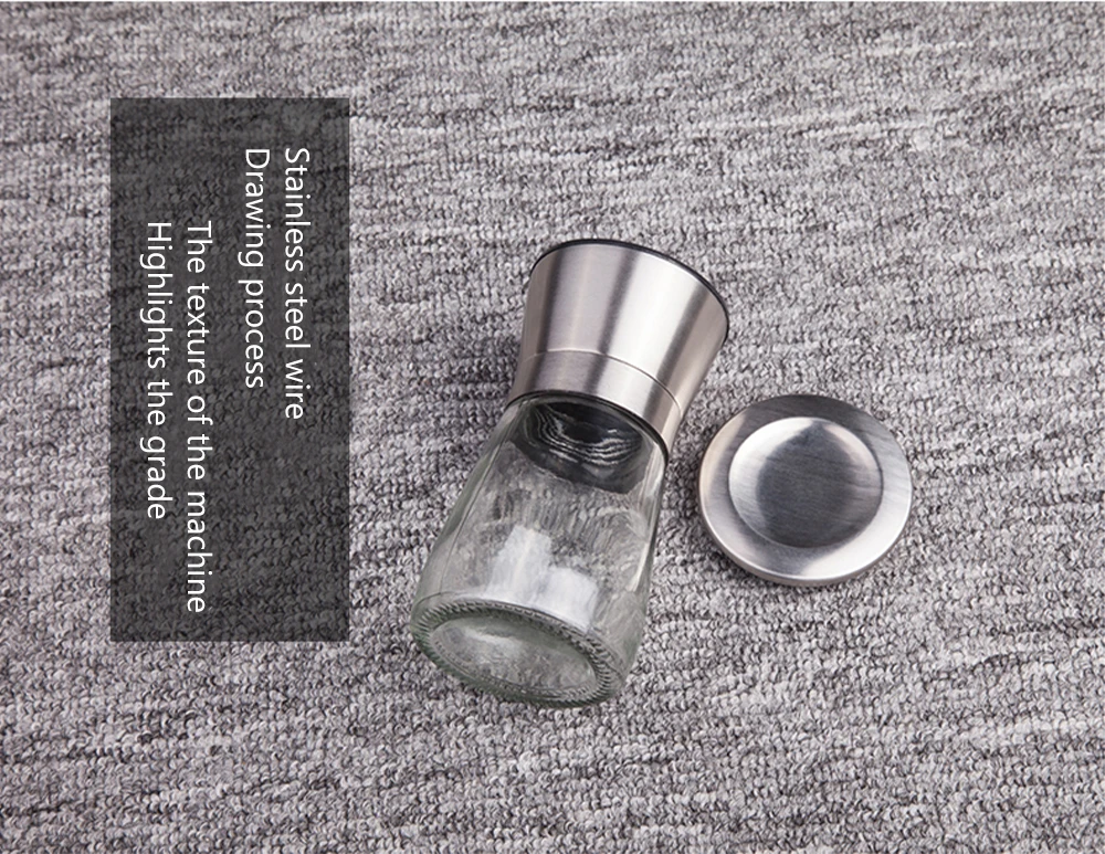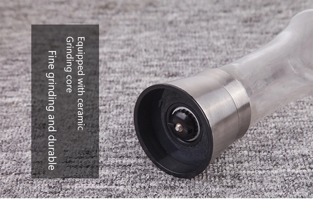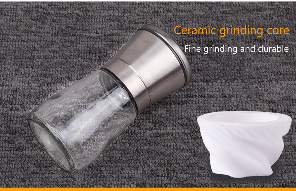Кухонная шлифовальная машина, черный перец, ручная свежемолотая морская соль, нержавеющая сталь, бутылка для приправ, кухонный инструмент, керамический шлифовальный сердечник Наименование: ручная шлифовальная машина Материал: стекло, керамический шлифовальный сердечник Размер: как показано Функция: измельчение перца, морская соль и т. Д. Дисплей продуктаОплата