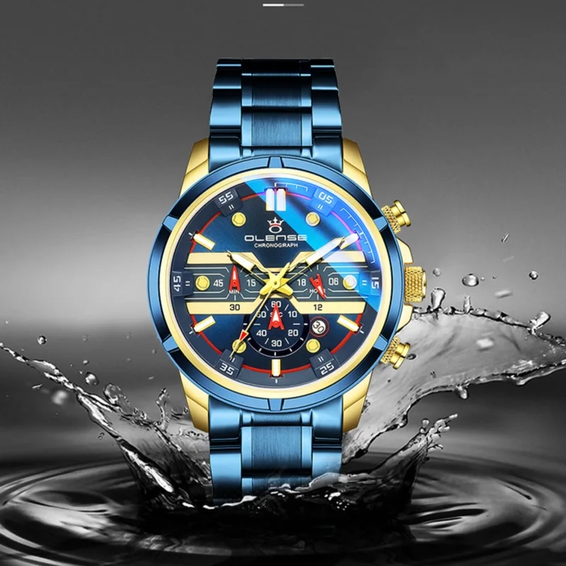 Выбор качества изготовления Материал ремешка: прочный ремешок из нержавеющей стали Чехол Ширина: 47 мм Чехол Толщина: 11,8 мм Ширина ремешка: 24 мм Длина ремешка: 230 мм Материал пряжки: Пряжка-бабочка Часовой механизм: многофункциональное движение Материал стекла: закалённое стекло с покрытием Гальванический процесс: вакуумное покрытие Вес часов: 130 г Водонепроницаемость: 3 АТМ