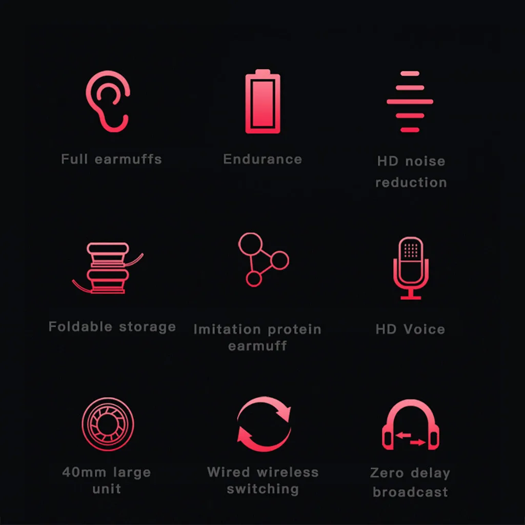 1. Поддержка стерео музыки Воспроизведение, телефонные звонки 2. Поддерживает все Аудиоустройства с поддержкой Bluetooth, такие как: мобильные телефоны, ноутбуки, планшеты Мозги, компьютеры и т. Д. 3, поддержка Bluetooth Тип подключения и флеш-карта памяти TF, 3,5 мм аудио к кабелю для подключения внешних устройств для подключения различных устройств 4, бинауральный микрофон Звоните, отвечайте на вызов или отклоняйте вызов в любое время и в любом месте 5, через USB зарядку, Вечерние литиевые батареи, могут использоваться повторно. 6, версия Bluetooth 5,0, Расстояние соединения about10 метров 7, 40 мм большой динамик, Качество звука HIFI без потерь 8, время прослушивания музыки 8-10 часов 9, складной дизайн, легко Для переноски 10, шокирующий игровой звук Качественные эффекты, позволят вам чувствовать себя комфортно в игровом процессе. 11. Гарнитура поддерживает Переключение между проводным и беспроводным, а также вставка tfcard, 9D объемный звуковой эффектПараметры: