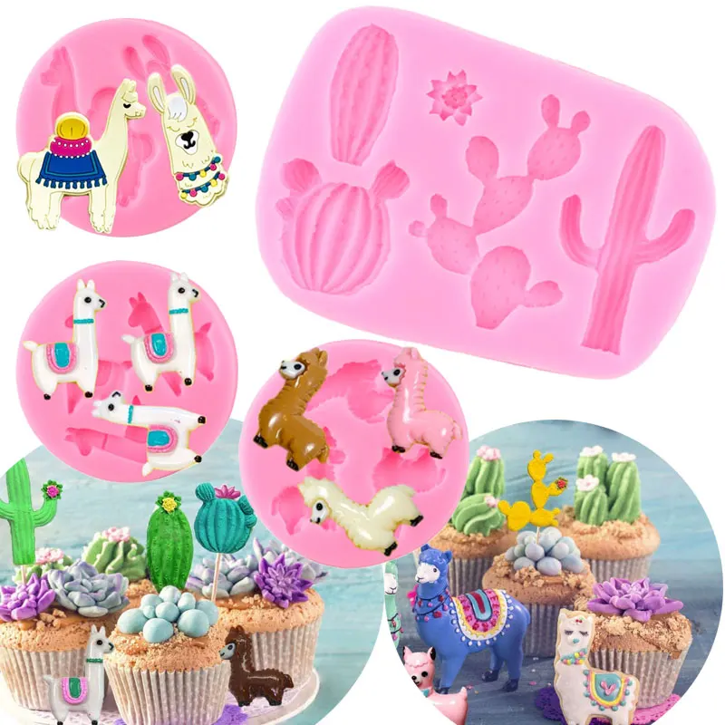 Кактус Альпака силиконовая форма лама торт кайма для мастики формы кекс Топпер детские инструменты для украшения торта для вечеринки конфеты шоколадная форма