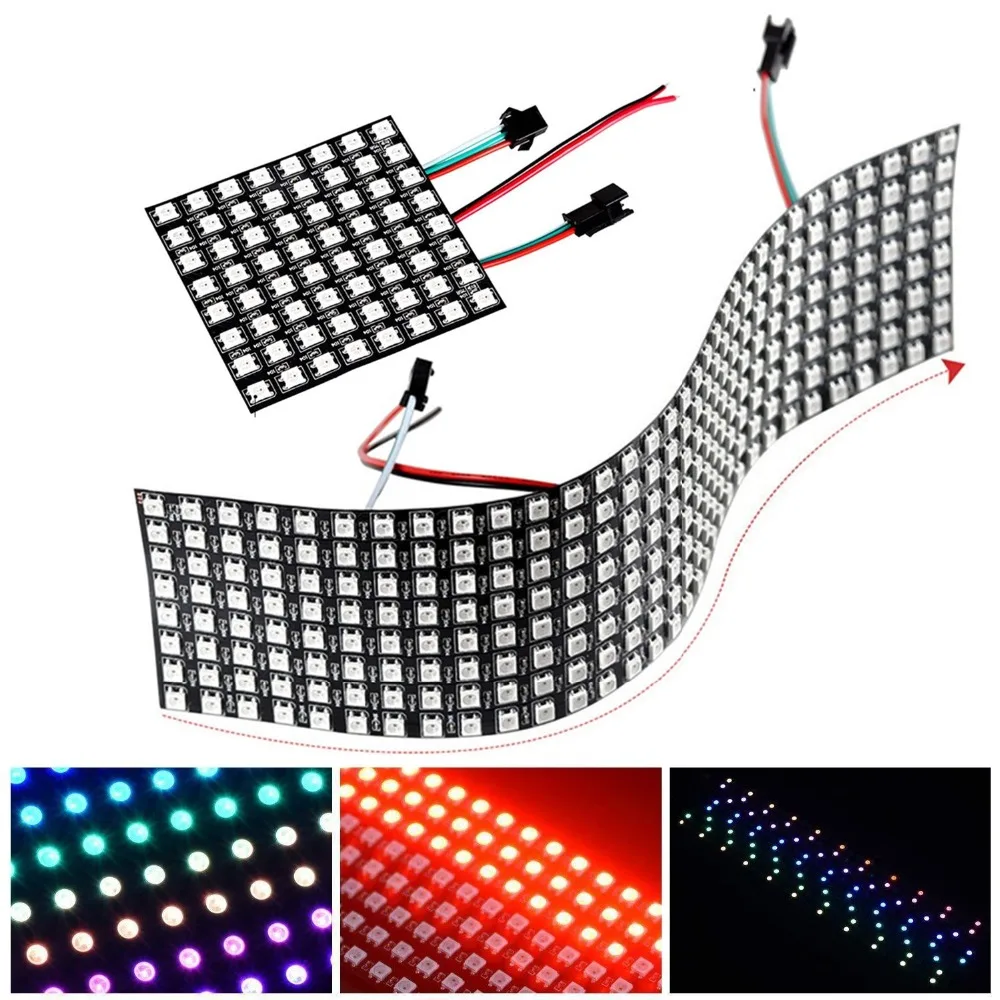 WS2812B Pixel Светодиодный индивидуально адресуемый цифровой светодиодный модуль 8*8/16*16/8*32 гибкий дисплей матричный экран DC5V Черный PCB