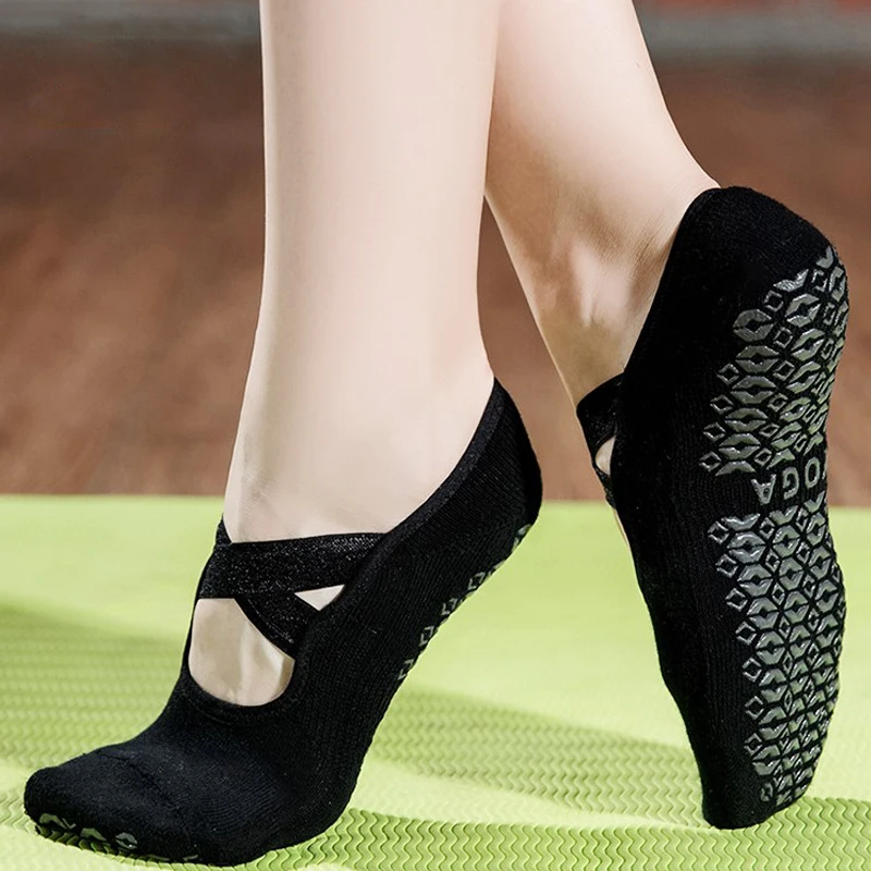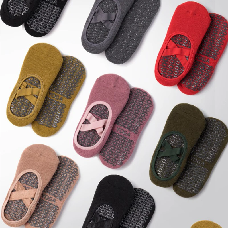 Оптовая продажа, качественные носки для йоги, женские спортивные нескользящие носки для занятий спортом, Пилатес, балет, носки для фитнеса, носки с ремешками с полным носком и перекрестными ремешками