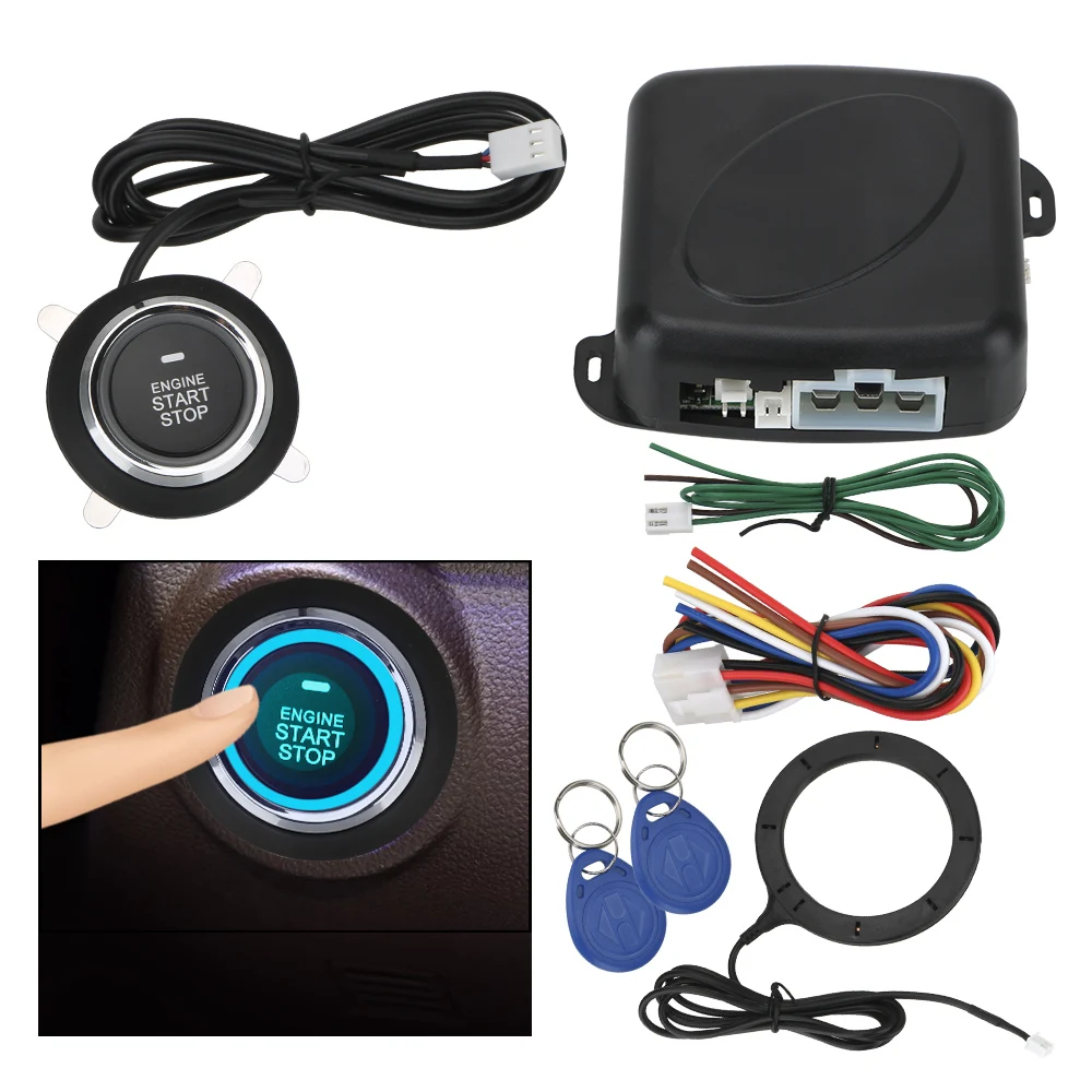 Особенности: Это простая и простая в использовании радиочастотная Автомобильная сигнализация с нажимной кнопкой запуска двигателя и иммобилайзером транспондера. Запуск автомобильного двигателя RFID прост в установке и использовании, может намного проще запустить или остановить ваш автомобиль и сохранить его безопасным в то же время. Кнопка запуска/отключения двигателя. Автоматическая блокировка хоста через 15 секунд. Откройте функцию акустики и приборной панели. Блокировка двигателя RFID. Иммобилайзер с защитой от кражи и блокировкой карт, система автоматически переключится в режим поставки через 15 секунд после остановки автомобиля. В режиме включения, когда ответчик поднимается близко к (около 2 - 5 см) кругу провода, система будет звуковой Bi, что означает, что система отключена. Может подойти к вашей автомобильной сигнализации или системе бесключевого доступа. Может использоваться во всех видах автомобилей с напряжением 12 В. Легко устанавливается и отсоединяется.