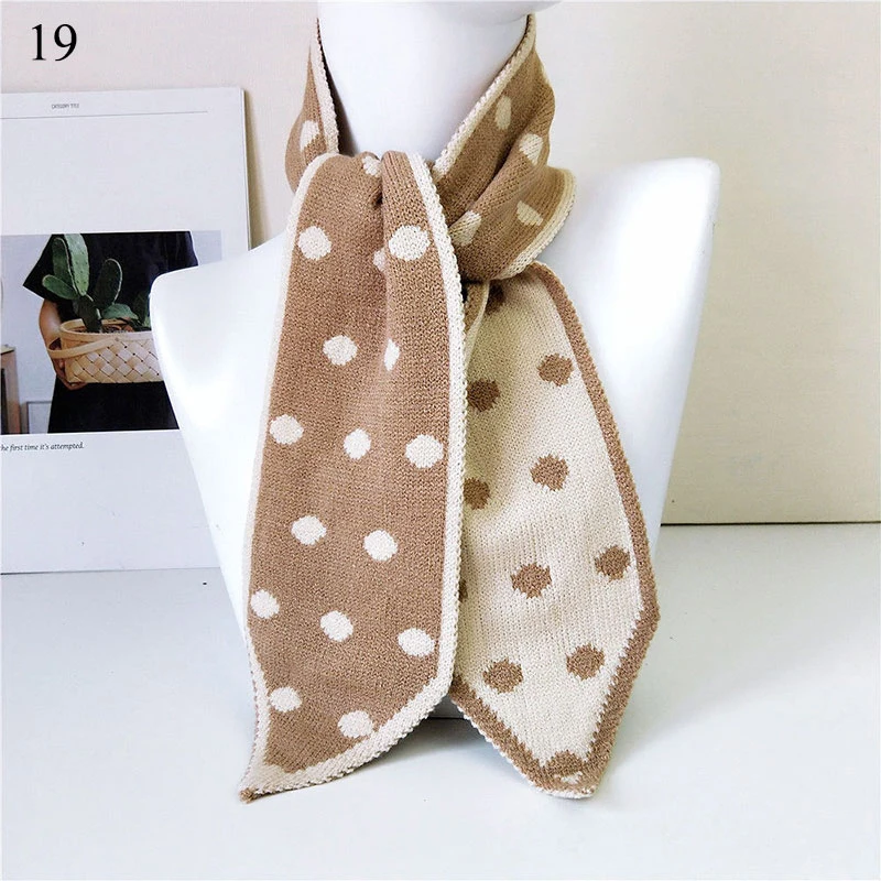 Двусторонний заостренный шарф, вязаный шарф для пары, Длинный Шарф Для худой шеи, теплый воротник, шарфы, узор в горошек, луна в полоску