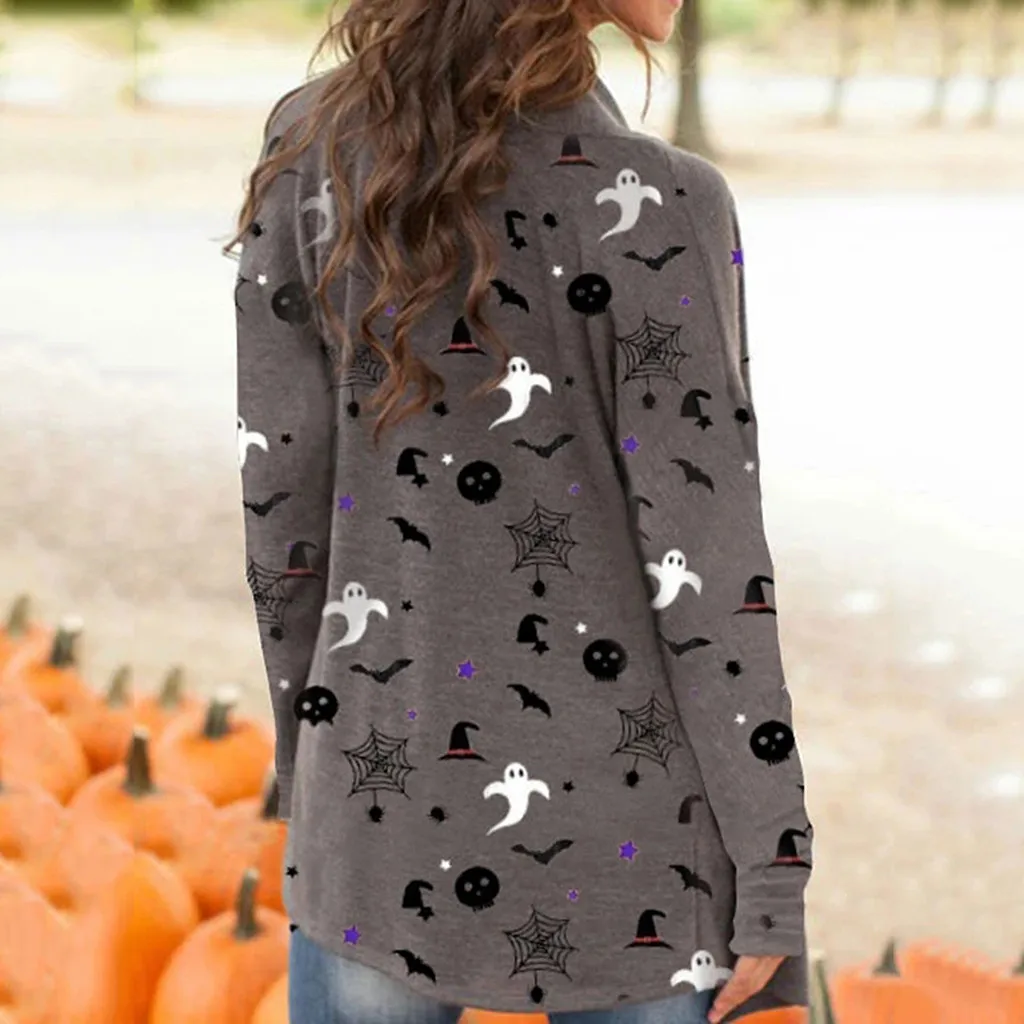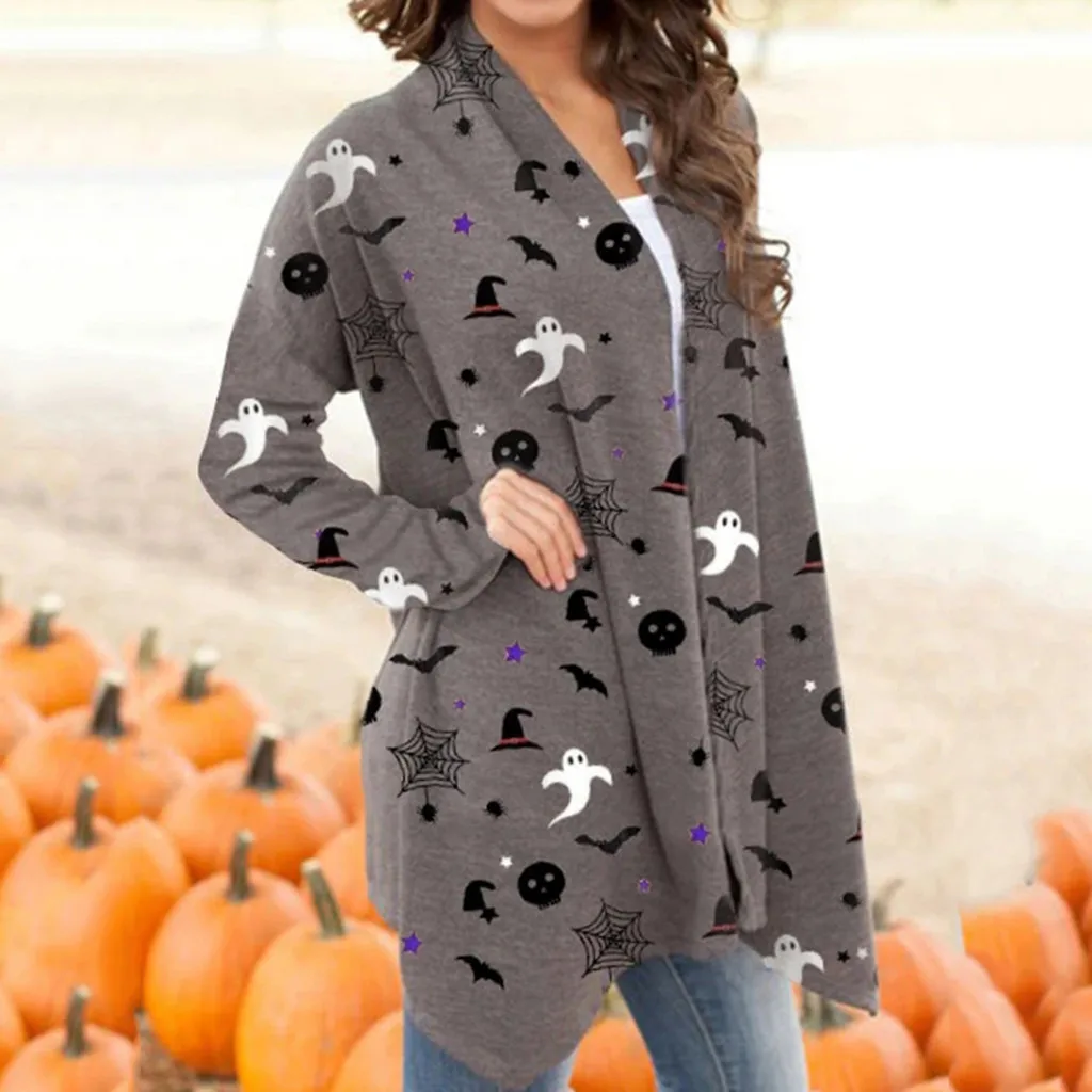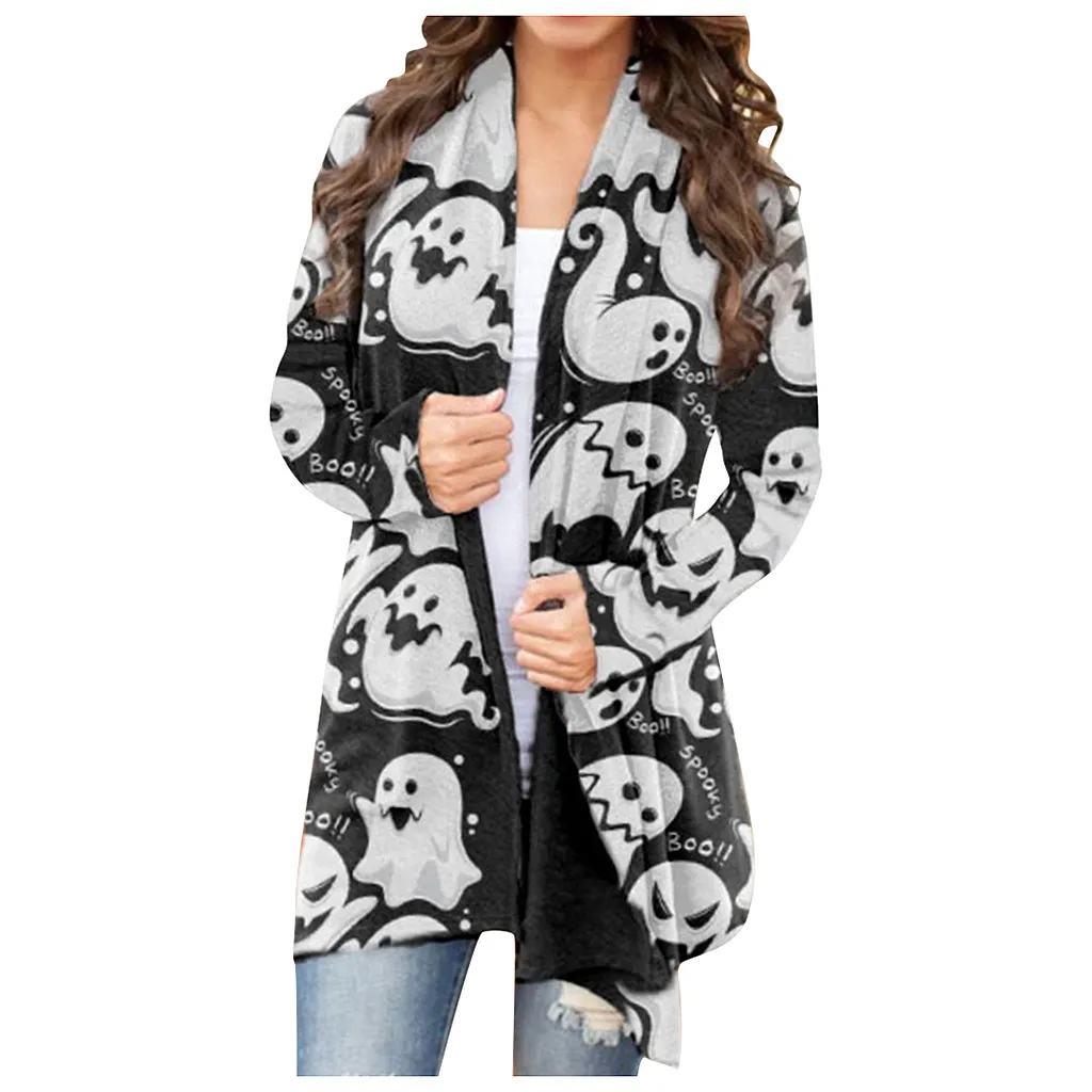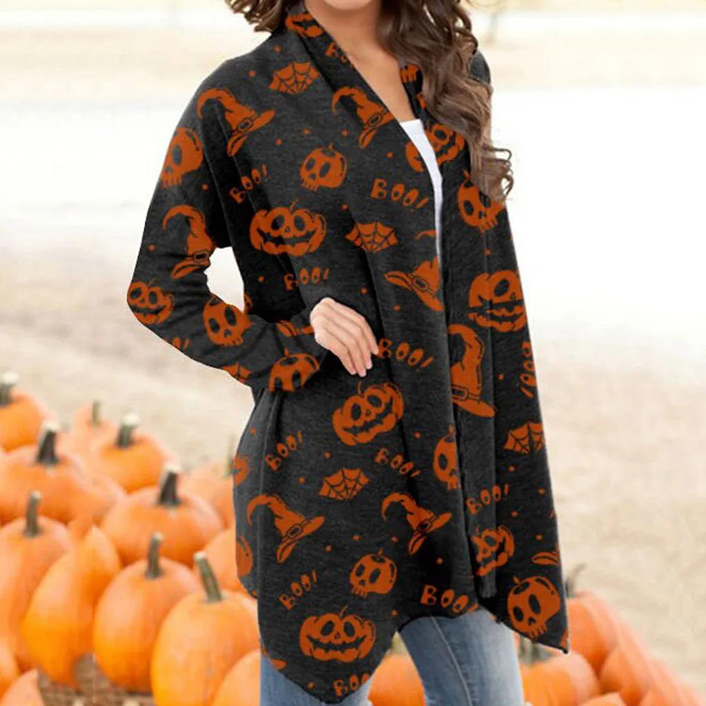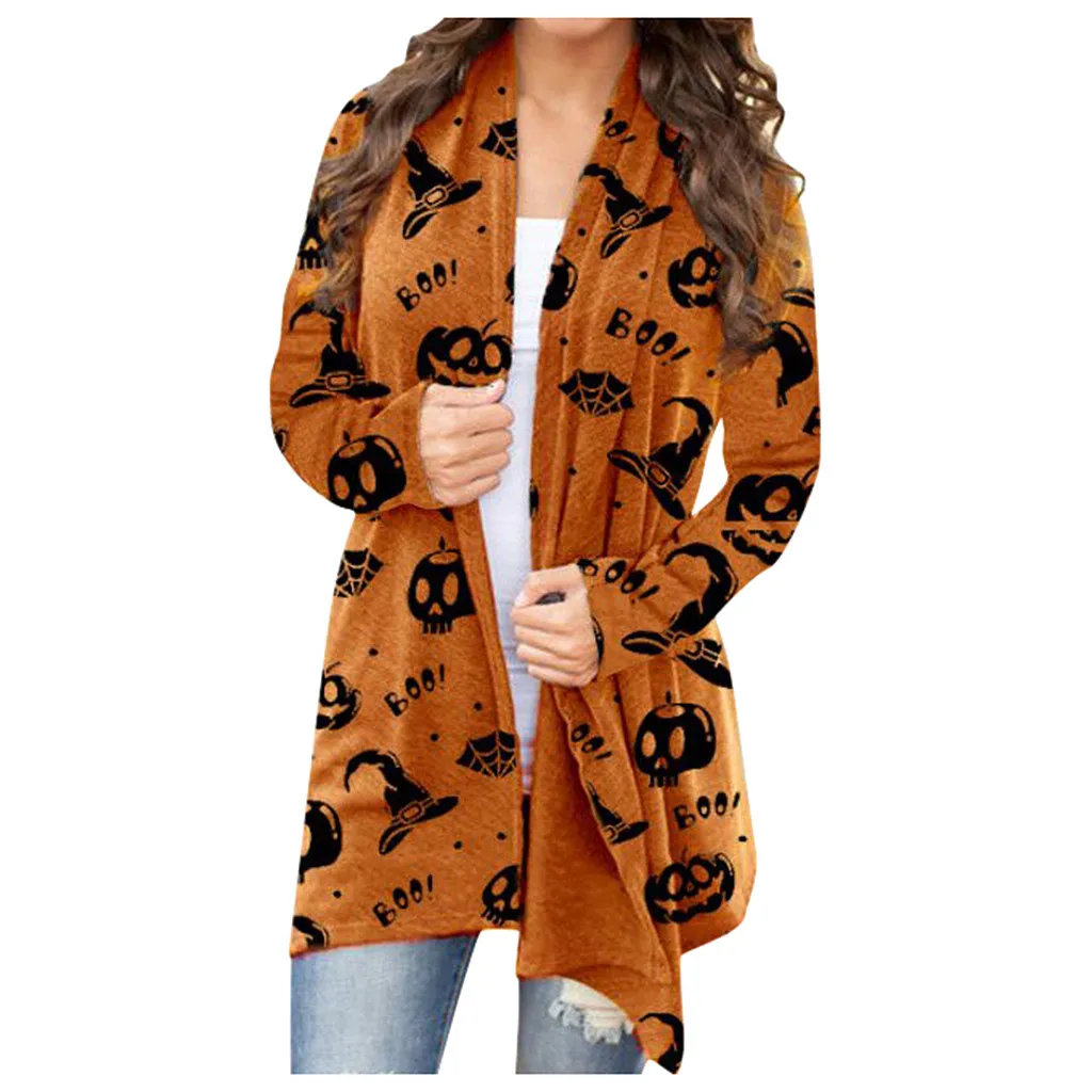 Для женщин на Хэллоуин с изображением животных, котов Тыква кардиган-пальто с оригинальным принтом