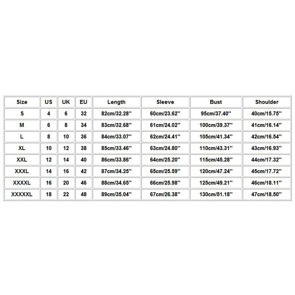 Размеры Свяжитесь с нами Великобритания ЕС Длина Рукава Обхват груди Сумка на плечо S 4 6 32 82 см/32,28'' 60 см/23,62'' 95 см/37,40'' 40 см/15,75'' М 6 8 34 83 см/32,68'' 61 см/24,02'' 100 см/39,37'' 41 см/16,14'' L 8 10 36 84 см/33,07'' 62 см/24,41'' 105 см/41,34'' 42 см/16,54'' XL 10 12 38 85 см/33,46'' 63 см/24,80'' 110 см/43,31'' 43 см для ухода за ребенком для мам/16,93'' XXL 12 14 40 86 см/33,86'' Высота голенища 64 см; 25,20'' 115 см/45,28'' 44 см/17,32'' XХХL 14 16 42 87 см/34,25'' 65 см/25,59'' 120 см/47,24'' 45 см/17,72'' XXXXL 16 20 46 88 см/34,65'' 66 см/25,98'' 125 см/49,21'' 46 см/18,11'' XXXXXL 18 22 48 89 см/35,04'' 67 см/26,38'' 130 см/51,18'' 47 см/18,50''
